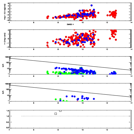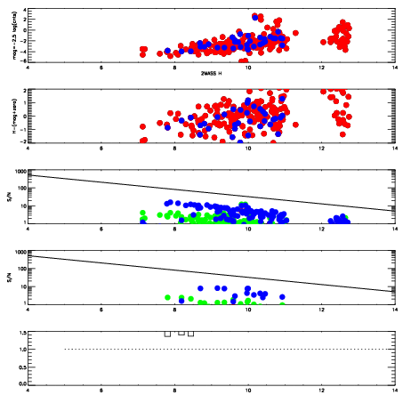 | Spatial sky 16325A emission deviations (filled: sky, open: star)