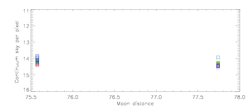 Zeropoints | Sky level | Sky level vs moon distance |