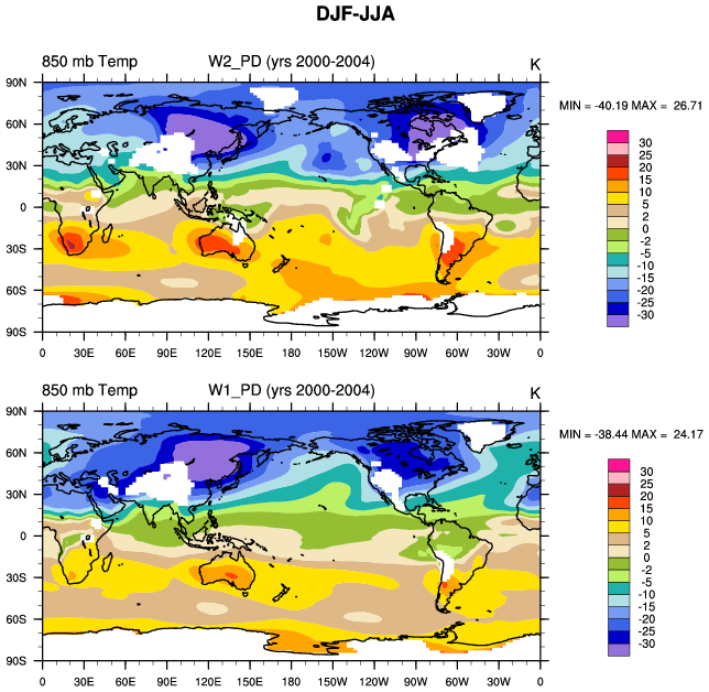 DIAG Set 9 - Horizontal contour plots of DJF-JJA differences