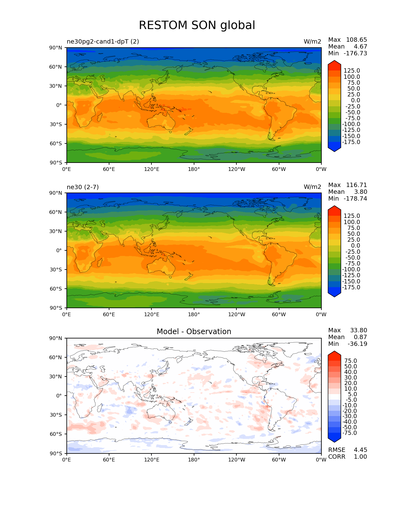 Use this command to recreate this image: | e3sm_diags --no_viewer --results_dir '/global/project/projectdirs/acme/www/ambrad/pg-ne30pg2-cand1-dpT' --variables 'RESTOM' --diff_colormap 'diverging_bwr.rgb' --contour_levels '-175' '-150' '-125' '-100' '-75' '-50' '-25' '0' '25' '50' '75' '100' '125' --diff_levels '-75' '-50' '-40' '-30' '-20' '-10' '-5' '5' '10' '20' '30' '40' '50' '75' --test_colormap 'cet_rainbow.rgb' --backend 'mpl' --canvas_size_h '1628' --reference_colormap 'cet_rainbow.rgb' --reference_data_path '/global/cscratch1/sd/ambradl/acme_scratch/cori-knl/diags1/ne30' --main_title 'RESTOM SON global' --test_data_path '/global/cscratch1/sd/ambradl/acme_scratch/cori-knl/diags1/ne30pg2-cand1-dpT' --regions 'global' --regrid_method 'conservative' --figsize '8.5' '11.0' --canvas_size_w '1212' --run_type 'model_vs_model' --regrid_tool 'esmf' --num_workers '4' --reference_name 'ne30' --output_format 'png' --case_id 'model_vs_model' --granulate 'variables' 'seasons' 'regions' 'plevs' --test_name 'ne30pg2-cand1-dpT' --seasons 'SON' --arrows --selectors 'sets' 'seasons' --diff_title 'Model - Observation' --sets 'lat_lon' --dpi '150' |