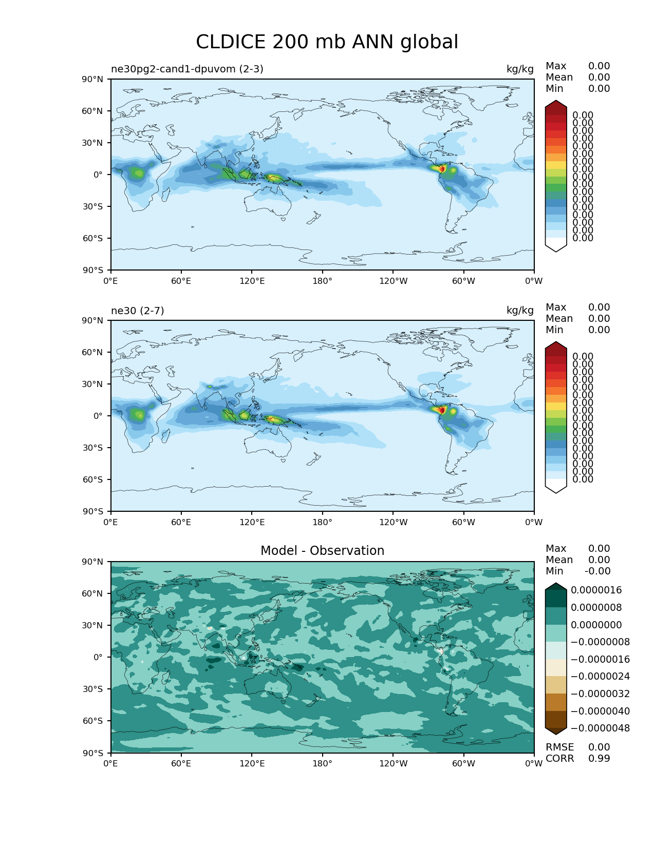 Use this command to recreate this image: | e3sm_diags --no_viewer --results_dir '/global/project/projectdirs/acme/www/ambrad/pg-ne30pg2-cand1-dpuvom' --diff_colormap 'BrBG' --contour_levels '0.0' '9.35e-07' '1.865e-06' '2.8e-06' '3.73e-06' '4.665e-06' '5.6e-06' '6.55e-06' '7.45e-06' '8.4e-06' '9.35e-06' '1.025e-05' '1.12e-05' '1.215e-05' '1.305e-05' '1.4e-05' '1.495e-05' --backend 'mpl' --canvas_size_h '1628' --reference_colormap 'WhiteBlueGreenYellowRed.rgb' --reference_data_path '/global/cscratch1/sd/ambradl/acme_scratch/cori-knl/diags1/ne30' --main_title 'CLDICE 200 mb ANN global' --test_data_path '/global/cscratch1/sd/ambradl/acme_scratch/cori-knl/diags1/ne30pg2-cand1-dpuvom' --regions 'global' --test_colormap 'WhiteBlueGreenYellowRed.rgb' --regrid_method 'conservative' --variables 'CLDICE' --figsize '8.5' '11.0' --canvas_size_w '1212' --run_type 'model_vs_model' --regrid_tool 'esmf' --num_workers '4' --reference_name 'ne30' --output_format 'png' --case_id 'model_vs_model' --granulate 'variables' 'seasons' 'regions' 'plevs' --test_name 'ne30pg2-cand1-dpuvom' --seasons 'ANN' --arrows --selectors 'sets' 'seasons' --diff_title 'Model - Observation' --sets 'lat_lon' --plevs '200.0' --dpi '150' |