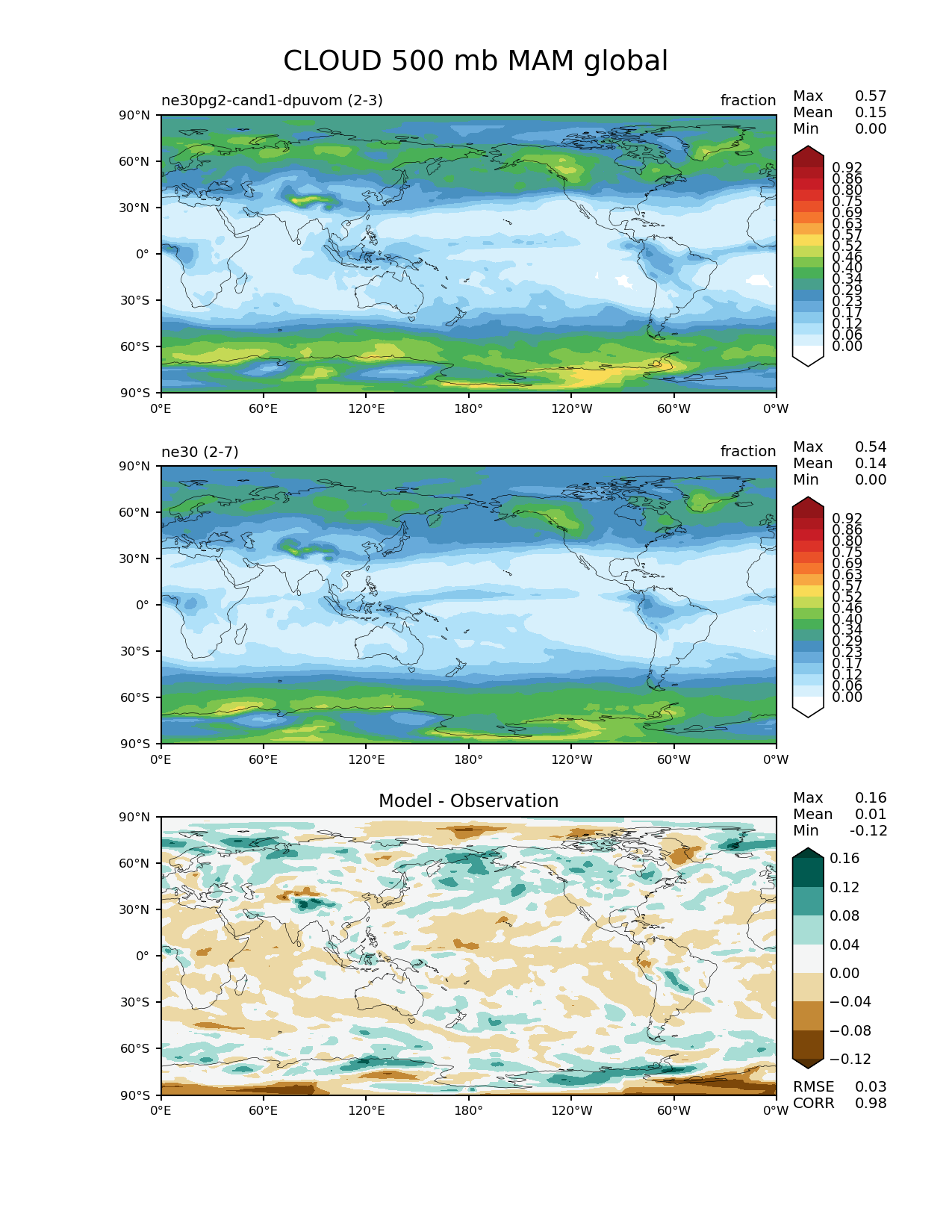 Use this command to recreate this image: | e3sm_diags --no_viewer --results_dir '/global/project/projectdirs/acme/www/ambrad/pg-ne30pg2-cand1-dpuvom' --diff_colormap 'BrBG' --contour_levels '0.0' '0.0574' '0.115' '0.172' '0.23' '0.287' '0.345' '0.402' '0.459' '0.517' '0.574' '0.632' '0.689' '0.747' '0.804' '0.861' '0.919' --backend 'mpl' --canvas_size_h '1628' --reference_colormap 'WhiteBlueGreenYellowRed.rgb' --reference_data_path '/global/cscratch1/sd/ambradl/acme_scratch/cori-knl/diags1/ne30' --main_title 'CLOUD 500 mb MAM global' --test_data_path '/global/cscratch1/sd/ambradl/acme_scratch/cori-knl/diags1/ne30pg2-cand1-dpuvom' --regions 'global' --test_colormap 'WhiteBlueGreenYellowRed.rgb' --regrid_method 'conservative' --variables 'CLOUD' --figsize '8.5' '11.0' --canvas_size_w '1212' --run_type 'model_vs_model' --regrid_tool 'esmf' --num_workers '4' --reference_name 'ne30' --output_format 'png' --case_id 'model_vs_model' --granulate 'variables' 'seasons' 'regions' 'plevs' --test_name 'ne30pg2-cand1-dpuvom' --seasons 'MAM' --arrows --selectors 'sets' 'seasons' --diff_title 'Model - Observation' --sets 'lat_lon' --plevs '500.0' --dpi '150' |