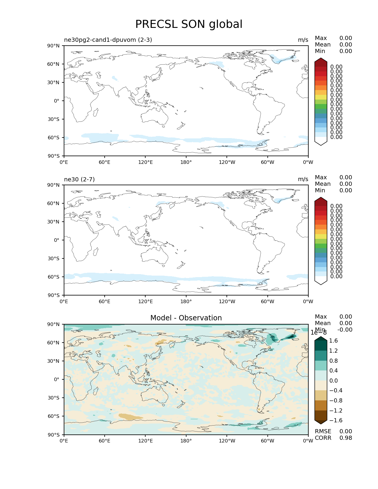 Use this command to recreate this image: | e3sm_diags --no_viewer --results_dir '/global/project/projectdirs/acme/www/ambrad/pg-ne30pg2-cand1-dpuvom' --variables 'PRECSL' --diff_colormap 'BrBG' --contour_levels '1.88235294118e-08' '3.76470588235e-08' '5.64705882353e-08' '7.52941176471e-08' '9.41176470588e-08' '1.12941176471e-07' '1.31764705882e-07' '1.50588235294e-07' '1.69411764706e-07' '1.88235294118e-07' '2.07058823529e-07' '2.25882352941e-07' '2.44705882353e-07' '2.63529411765e-07' '2.82352941176e-07' '3.01176470588e-07' --backend 'mpl' --canvas_size_h '1628' --reference_colormap 'WhiteBlueGreenYellowRed.rgb' --reference_data_path '/global/cscratch1/sd/ambradl/acme_scratch/cori-knl/diags1/ne30' --main_title 'PRECSL SON global' --test_data_path '/global/cscratch1/sd/ambradl/acme_scratch/cori-knl/diags1/ne30pg2-cand1-dpuvom' --regions 'global' --test_colormap 'WhiteBlueGreenYellowRed.rgb' --regrid_method 'conservative' --figsize '8.5' '11.0' --canvas_size_w '1212' --run_type 'model_vs_model' --regrid_tool 'esmf' --num_workers '4' --reference_name 'ne30' --output_format 'png' --case_id 'model_vs_model' --granulate 'variables' 'seasons' 'regions' 'plevs' --test_name 'ne30pg2-cand1-dpuvom' --seasons 'SON' --arrows --selectors 'sets' 'seasons' --diff_title 'Model - Observation' --sets 'lat_lon' --dpi '150' |