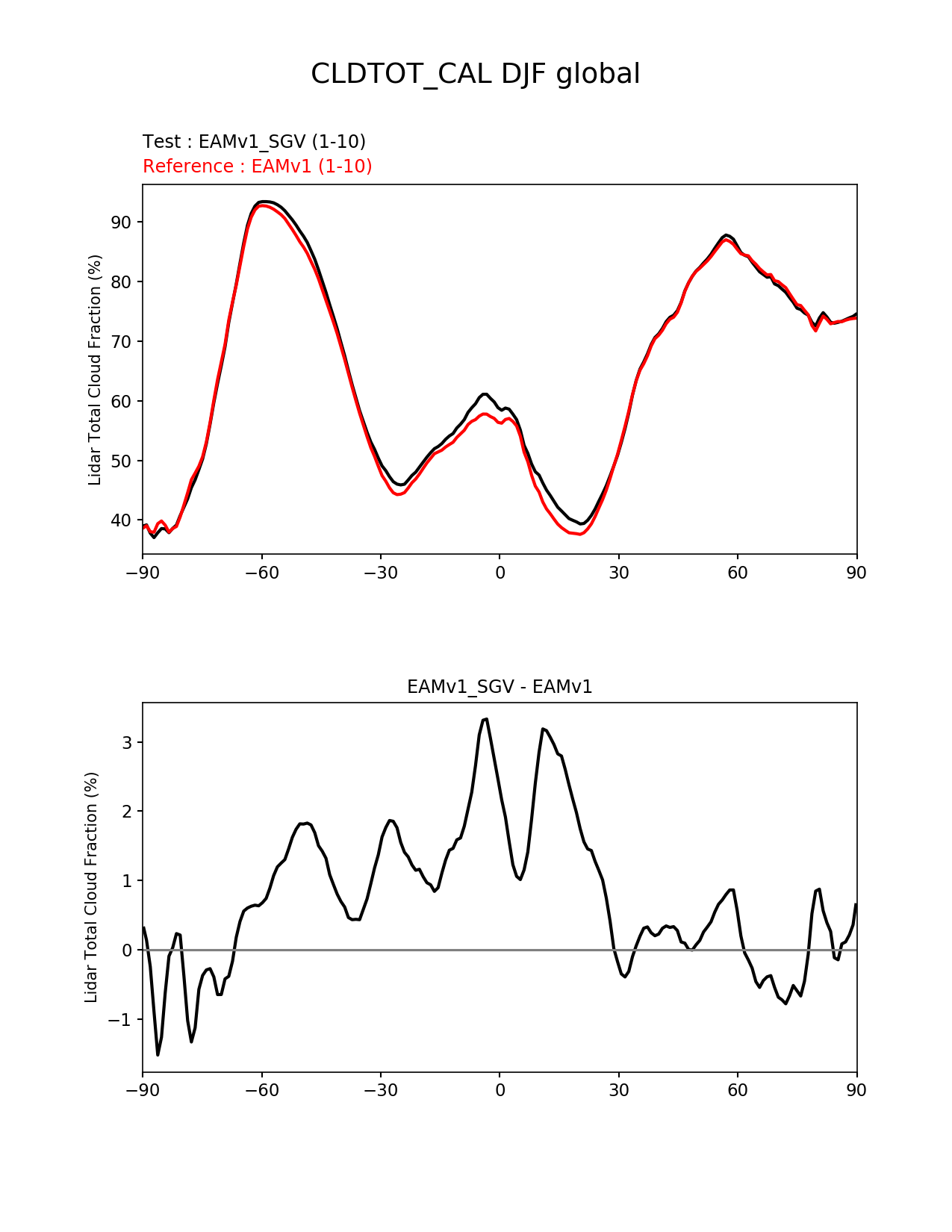 Use this command to recreate this image: | e3sm_diags --no_viewer --variables 'CLDTOT_CAL' --diff_colormap 'diverging_bwr.rgb' --test_data_path '/global/cscratch1/sd/plma/people/for_bryce/climo/v1_gust_f2000/' --backend 'mpl' --canvas_size_h '1628' --reference_colormap 'cet_rainbow.rgb' --reference_data_path '/global/cscratch1/sd/plma/people/for_bryce/climo/v1_f2000/' --main_title 'CLDTOT_CAL DJF global' --results_dir '/global/cscratch1/sd/beharrop/people/for_polun/EAMv1_SGV-EAMv1/' --regions 'global' --test_colormap 'cet_rainbow.rgb' --regrid_method 'conservative' --short_test_name 'EAMv1_SGV' --figsize '8.5' '11.0' --canvas_size_w '1212' --run_type 'model_vs_model' --regrid_tool 'esmf' --num_workers '64' --output_format 'png' --case_id 'model_vs_model' --granulate 'variables' 'seasons' 'regions' 'plevs' --test_name 'v1_gust_f2000' --seasons 'DJF' --arrows --selectors 'sets' 'seasons' --diff_title 'EAMv1_SGV - EAMv1' --sets 'zonal_mean_xy' --ref_name 'v1_f2000' --multiprocessing --dpi '150' |