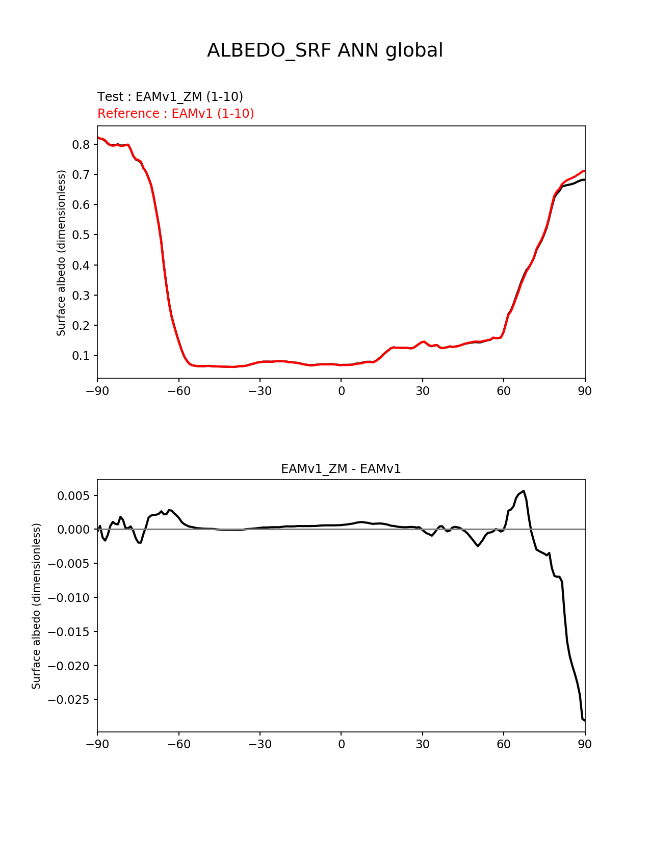 Use this command to recreate this image: | e3sm_diags --no_viewer --variables 'ALBEDO_SRF' --diff_colormap 'diverging_bwr.rgb' --test_data_path '/global/cscratch1/sd/plma/people/for_bryce/climo/v1_zm_f2000/' --backend 'mpl' --canvas_size_h '1628' --reference_colormap 'cet_rainbow.rgb' --reference_data_path '/global/cscratch1/sd/plma/people/for_bryce/climo/v1_f2000/' --main_title 'ALBEDO_SRF ANN global' --results_dir '/global/cscratch1/sd/beharrop/people/for_polun/EAMv1_ZM-EAMv1/' --regions 'global' --test_colormap 'cet_rainbow.rgb' --regrid_method 'conservative' --short_test_name 'EAMv1_ZM' --figsize '8.5' '11.0' --canvas_size_w '1212' --run_type 'model_vs_model' --regrid_tool 'esmf' --num_workers '64' --output_format 'png' --case_id 'model_vs_model' --granulate 'variables' 'seasons' 'regions' 'plevs' --test_name 'v1_zm_f2000' --seasons 'ANN' --arrows --selectors 'sets' 'seasons' --diff_title 'EAMv1_ZM - EAMv1' --sets 'zonal_mean_xy' --ref_name 'v1_f2000' --multiprocessing --dpi '150' |