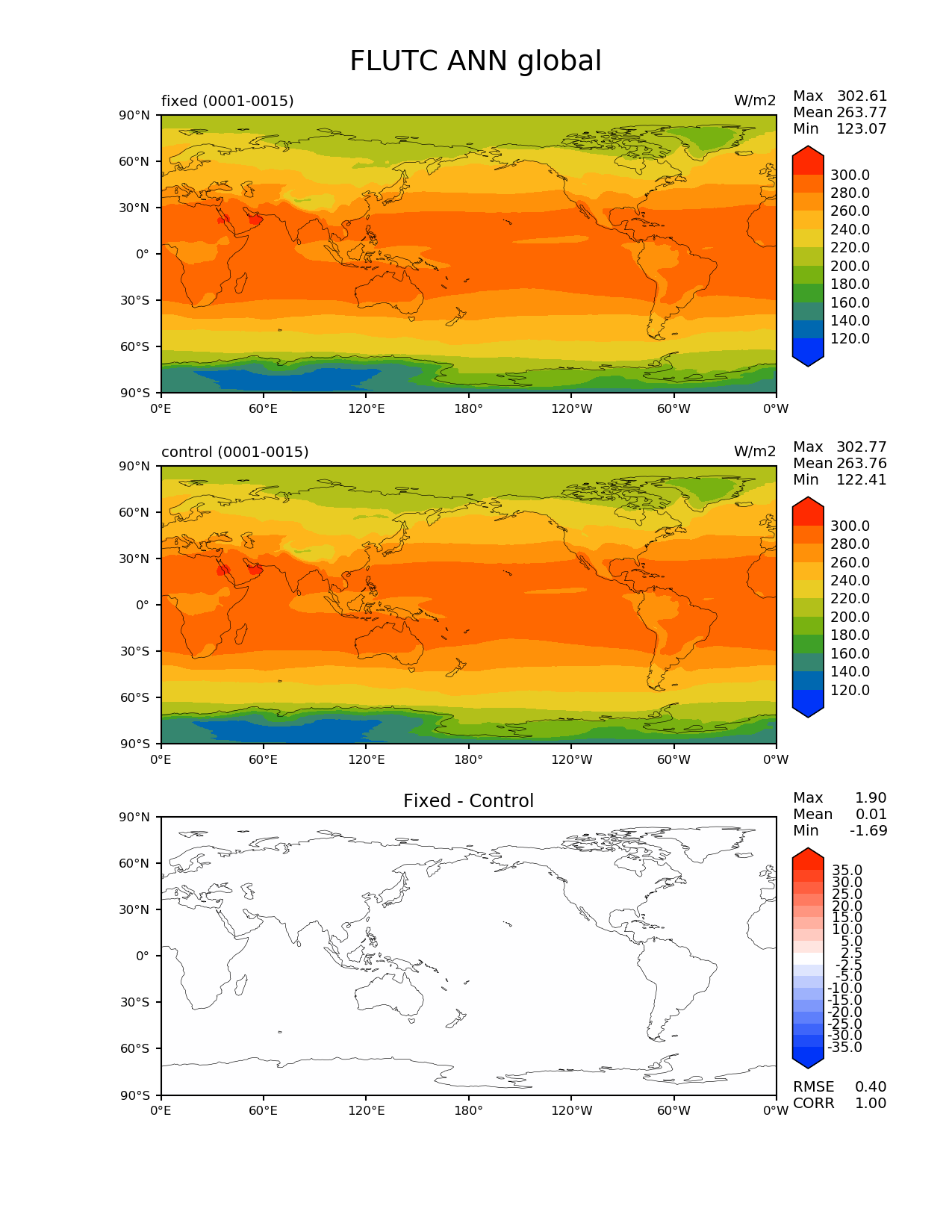 Use this command to recreate this image: | e3sm_diags --no_viewer --variables 'FLUTC' --diff_colormap 'diverging_bwr.rgb' --contour_levels '120' '140' '160' '180' '200' '220' '240' '260' '280' '300' --test_data_path '/global/cscratch1/sd/beharrop/acme_scratch/cori-knl/test_tracer_cons_bugfix1/reg_climo/test_tracer_cons_bugfix1/yrs0001_0015/' --diff_levels '-35' '-30' '-25' '-20' '-15' '-10' '-5' '-2.5' '2.5' '5' '10' '15' '20' '25' '30' '35' --backend 'mpl' --canvas_size_h '1628' --reference_colormap 'cet_rainbow.rgb' --reference_data_path '/global/cscratch1/sd/beharrop/acme_scratch/cori-knl/control_tracer_cons_bugfix1/reg_climo/control_tracer_cons_bugfix1/yrs0001_0015/' --main_title 'FLUTC ANN global' --results_dir '/global/cscratch1/sd/beharrop/temp/e3sm_bugfix_test_1year/' --regions 'global' --test_colormap 'cet_rainbow.rgb' --regrid_method 'conservative' --short_test_name 'fixed' --figsize '8.5' '11.0' --canvas_size_w '1212' --run_type 'model_vs_model' --regrid_tool 'esmf' --num_workers '64' --output_format 'png' --case_id 'model_vs_model' --granulate 'variables' 'seasons' 'regions' 'plevs' --test_name 'test_tracer_cons_bugfix1' --seasons 'ANN' --arrows --selectors 'sets' 'seasons' --diff_title 'Fixed - Control' --sets 'lat_lon' --ref_name 'control_tracer_cons_bugfix1' --multiprocessing --dpi '150' |