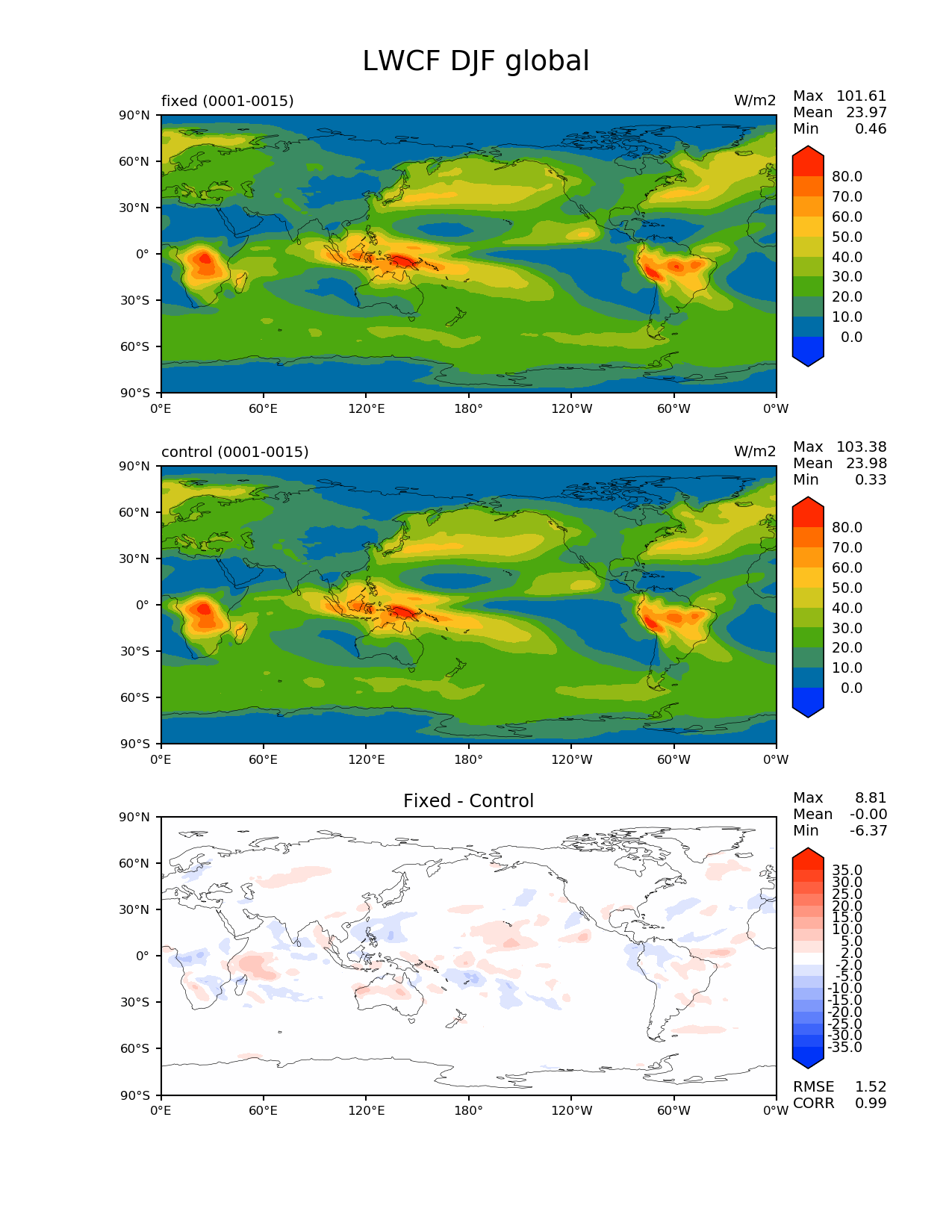Use this command to recreate this image: | e3sm_diags --no_viewer --variables 'LWCF' --diff_colormap 'diverging_bwr.rgb' --contour_levels '0' '10' '20' '30' '40' '50' '60' '70' '80' --test_data_path '/global/cscratch1/sd/beharrop/acme_scratch/cori-knl/test_tracer_cons_bugfix1/reg_climo/test_tracer_cons_bugfix1/yrs0001_0015/' --diff_levels '-35' '-30' '-25' '-20' '-15' '-10' '-5' '-2' '2' '5' '10' '15' '20' '25' '30' '35' --backend 'mpl' --canvas_size_h '1628' --reference_colormap 'cet_rainbow.rgb' --reference_data_path '/global/cscratch1/sd/beharrop/acme_scratch/cori-knl/control_tracer_cons_bugfix1/reg_climo/control_tracer_cons_bugfix1/yrs0001_0015/' --main_title 'LWCF DJF global' --results_dir '/global/cscratch1/sd/beharrop/temp/e3sm_bugfix_test_1year/' --regions 'global' --test_colormap 'cet_rainbow.rgb' --regrid_method 'conservative' --short_test_name 'fixed' --figsize '8.5' '11.0' --canvas_size_w '1212' --run_type 'model_vs_model' --regrid_tool 'esmf' --num_workers '64' --output_format 'png' --case_id 'model_vs_model' --granulate 'variables' 'seasons' 'regions' 'plevs' --test_name 'test_tracer_cons_bugfix1' --seasons 'DJF' --arrows --selectors 'sets' 'seasons' --diff_title 'Fixed - Control' --sets 'lat_lon' --ref_name 'control_tracer_cons_bugfix1' --multiprocessing --dpi '150' |