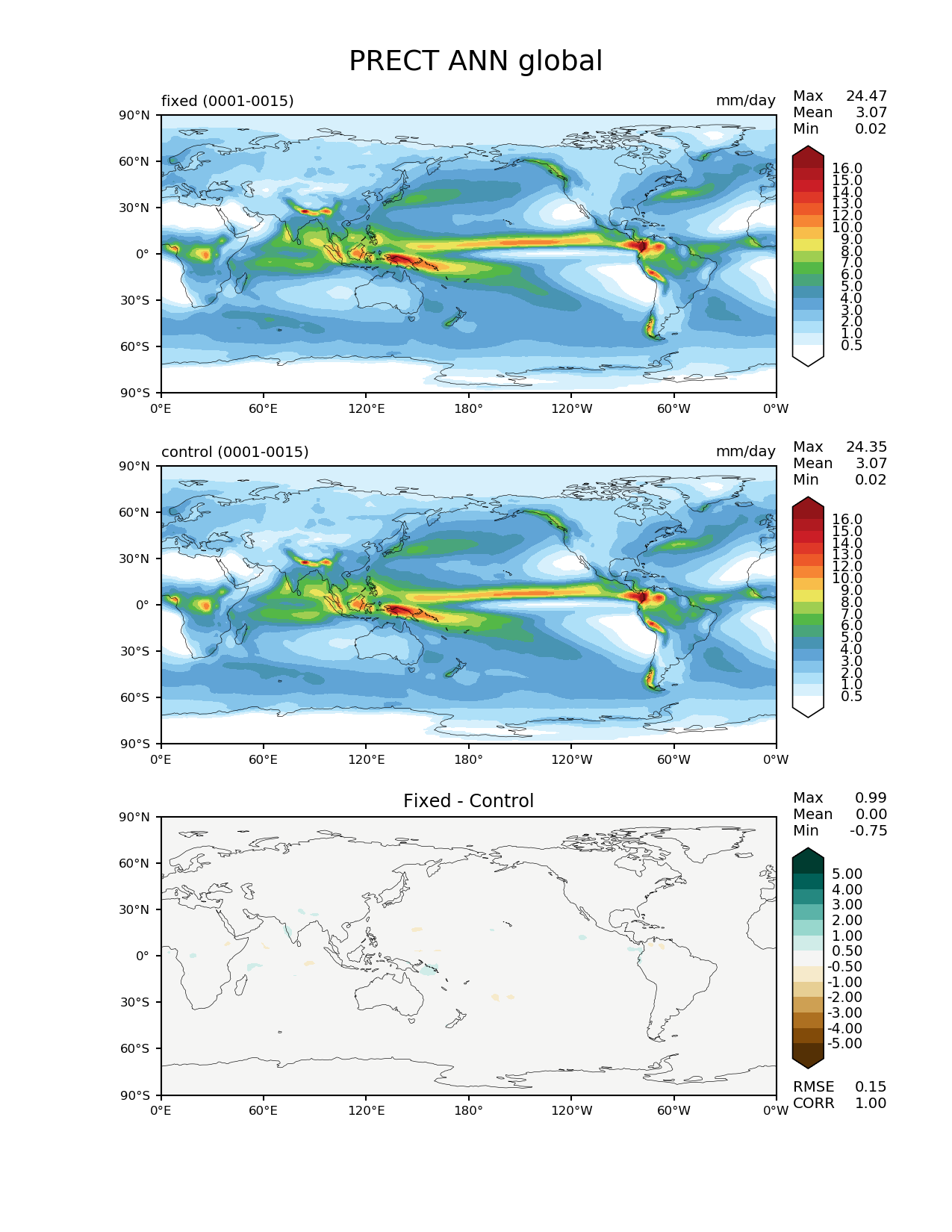 Use this command to recreate this image: | e3sm_diags --no_viewer --variables 'PRECT' --diff_colormap 'BrBG' --contour_levels '0.5' '1' '2' '3' '4' '5' '6' '7' '8' '9' '10' '12' '13' '14' '15' '16' --test_data_path '/global/cscratch1/sd/beharrop/acme_scratch/cori-knl/test_tracer_cons_bugfix1/reg_climo/test_tracer_cons_bugfix1/yrs0001_0015/' --diff_levels '-5' '-4' '-3' '-2' '-1' '-0.5' '0.5' '1' '2' '3' '4' '5' --backend 'mpl' --canvas_size_h '1628' --reference_colormap 'WhiteBlueGreenYellowRed.rgb' --reference_data_path '/global/cscratch1/sd/beharrop/acme_scratch/cori-knl/control_tracer_cons_bugfix1/reg_climo/control_tracer_cons_bugfix1/yrs0001_0015/' --main_title 'PRECT ANN global' --results_dir '/global/cscratch1/sd/beharrop/temp/e3sm_bugfix_test_1year/' --regions 'global' --test_colormap 'WhiteBlueGreenYellowRed.rgb' --regrid_method 'conservative' --short_test_name 'fixed' --figsize '8.5' '11.0' --canvas_size_w '1212' --run_type 'model_vs_model' --regrid_tool 'esmf' --num_workers '64' --output_format 'png' --case_id 'model_vs_model' --granulate 'variables' 'seasons' 'regions' 'plevs' --test_name 'test_tracer_cons_bugfix1' --seasons 'ANN' --arrows --selectors 'sets' 'seasons' --diff_title 'Fixed - Control' --sets 'lat_lon' --ref_name 'control_tracer_cons_bugfix1' --multiprocessing --dpi '150' |