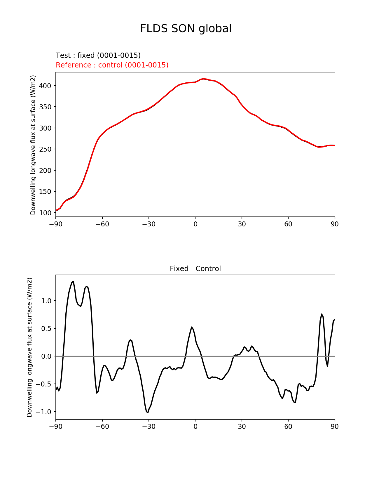 Use this command to recreate this image: | e3sm_diags --no_viewer --variables 'FLDS' --diff_colormap 'diverging_bwr.rgb' --test_data_path '/global/cscratch1/sd/beharrop/acme_scratch/cori-knl/test_tracer_cons_bugfix1/reg_climo/test_tracer_cons_bugfix1/yrs0001_0015/' --backend 'mpl' --canvas_size_h '1628' --reference_colormap 'cet_rainbow.rgb' --reference_data_path '/global/cscratch1/sd/beharrop/acme_scratch/cori-knl/control_tracer_cons_bugfix1/reg_climo/control_tracer_cons_bugfix1/yrs0001_0015/' --main_title 'FLDS SON global' --results_dir '/global/cscratch1/sd/beharrop/temp/e3sm_bugfix_test_1year/' --regions 'global' --test_colormap 'cet_rainbow.rgb' --regrid_method 'conservative' --short_test_name 'fixed' --figsize '8.5' '11.0' --canvas_size_w '1212' --run_type 'model_vs_model' --regrid_tool 'esmf' --num_workers '64' --output_format 'png' --case_id 'model_vs_model' --granulate 'variables' 'seasons' 'regions' 'plevs' --test_name 'test_tracer_cons_bugfix1' --seasons 'SON' --arrows --selectors 'sets' 'seasons' --diff_title 'Fixed - Control' --sets 'zonal_mean_xy' --ref_name 'control_tracer_cons_bugfix1' --multiprocessing --dpi '150' |