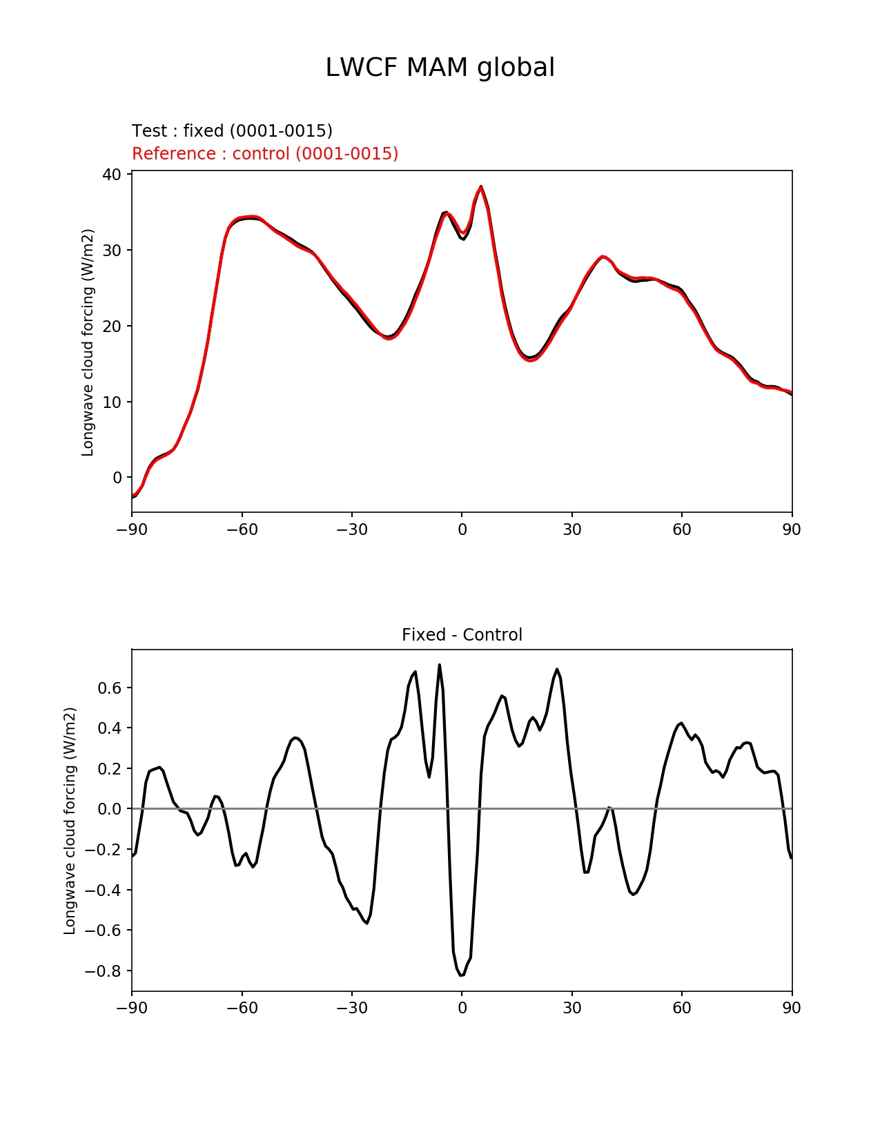 Use this command to recreate this image: | e3sm_diags --no_viewer --variables 'LWCF' --diff_colormap 'diverging_bwr.rgb' --test_data_path '/global/cscratch1/sd/beharrop/acme_scratch/cori-knl/test_tracer_cons_bugfix1/reg_climo/test_tracer_cons_bugfix1/yrs0001_0015/' --backend 'mpl' --canvas_size_h '1628' --reference_colormap 'cet_rainbow.rgb' --reference_data_path '/global/cscratch1/sd/beharrop/acme_scratch/cori-knl/control_tracer_cons_bugfix1/reg_climo/control_tracer_cons_bugfix1/yrs0001_0015/' --main_title 'LWCF MAM global' --results_dir '/global/cscratch1/sd/beharrop/temp/e3sm_bugfix_test_1year/' --regions 'global' --test_colormap 'cet_rainbow.rgb' --regrid_method 'conservative' --short_test_name 'fixed' --figsize '8.5' '11.0' --canvas_size_w '1212' --run_type 'model_vs_model' --regrid_tool 'esmf' --num_workers '64' --output_format 'png' --case_id 'model_vs_model' --granulate 'variables' 'seasons' 'regions' 'plevs' --test_name 'test_tracer_cons_bugfix1' --seasons 'MAM' --arrows --selectors 'sets' 'seasons' --diff_title 'Fixed - Control' --sets 'zonal_mean_xy' --ref_name 'control_tracer_cons_bugfix1' --multiprocessing --dpi '150' |