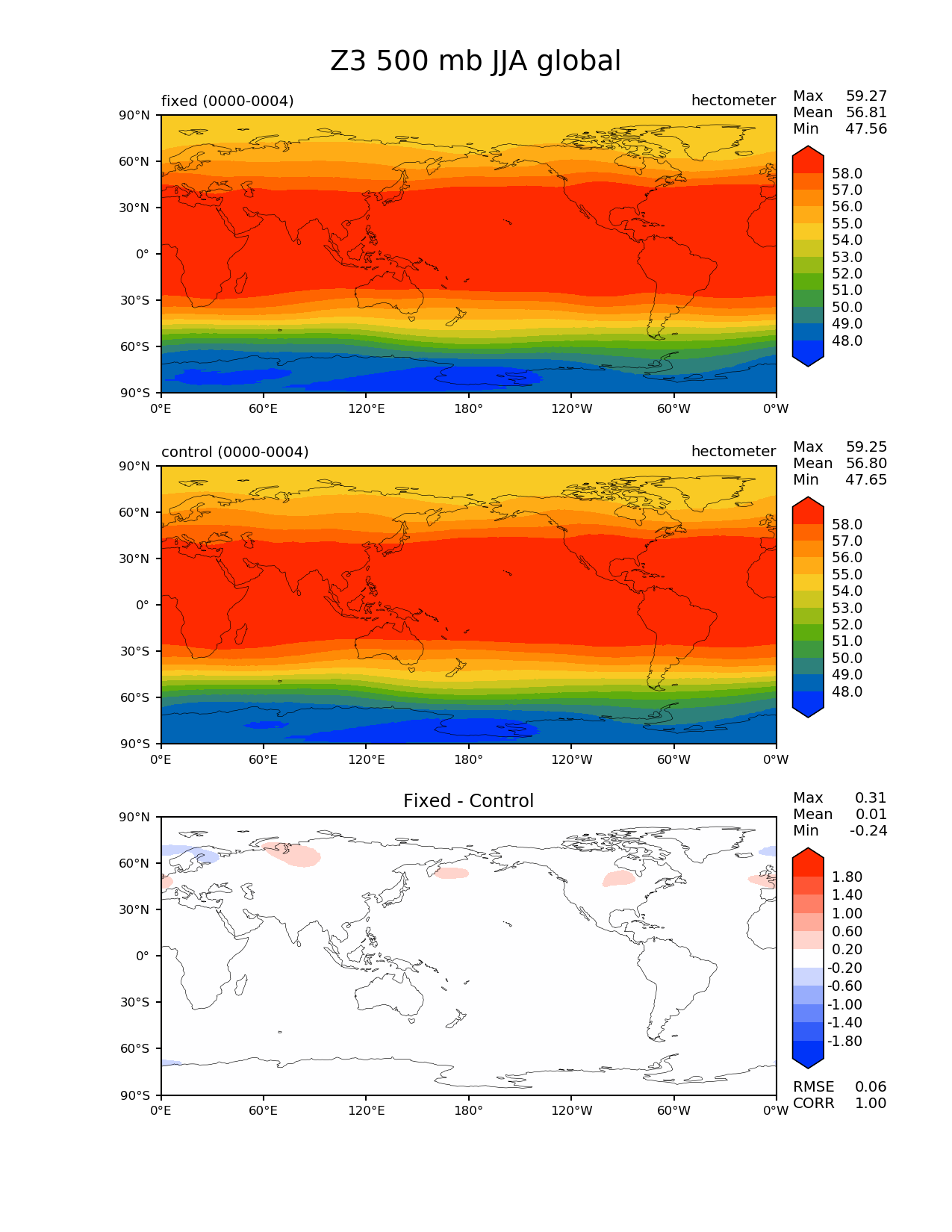 Use this command to recreate this image: | e3sm_diags --no_viewer --variables 'Z3' --diff_colormap 'diverging_bwr.rgb' --contour_levels '48' '49' '50' '51' '52' '53' '54' '55' '56' '57' '58' --test_data_path '/global/cscratch1/sd/beharrop/acme_scratch/cori-knl/test_tracer_cons_bugfix1/reg_climo/test_tracer_cons_bugfix1/yrs0000_0004/' --diff_levels '-1.8' '-1.4' '-1.0' '-0.6' '-0.2' '0.2' '0.6' '1.0' '1.4' '1.8' --backend 'mpl' --canvas_size_h '1628' --reference_colormap 'cet_rainbow.rgb' --reference_data_path '/global/cscratch1/sd/beharrop/acme_scratch/cori-knl/control_tracer_cons_bugfix1/reg_climo/control_tracer_cons_bugfix1/yrs0000_0004/' --main_title 'Z3 500 mb JJA global' --results_dir '/global/cscratch1/sd/beharrop/temp/e3sm_bugfix_test_5year/' --regions 'global' --test_colormap 'cet_rainbow.rgb' --regrid_method 'conservative' --short_test_name 'fixed' --figsize '8.5' '11.0' --canvas_size_w '1212' --run_type 'model_vs_model' --regrid_tool 'esmf' --num_workers '64' --output_format 'png' --case_id 'model_vs_model' --granulate 'variables' 'seasons' 'regions' 'plevs' --test_name 'test_tracer_cons_bugfix1' --seasons 'JJA' --arrows --selectors 'sets' 'seasons' --diff_title 'Fixed - Control' --sets 'lat_lon' --plevs '500.0' --ref_name 'control_tracer_cons_bugfix1' --multiprocessing --dpi '150' |