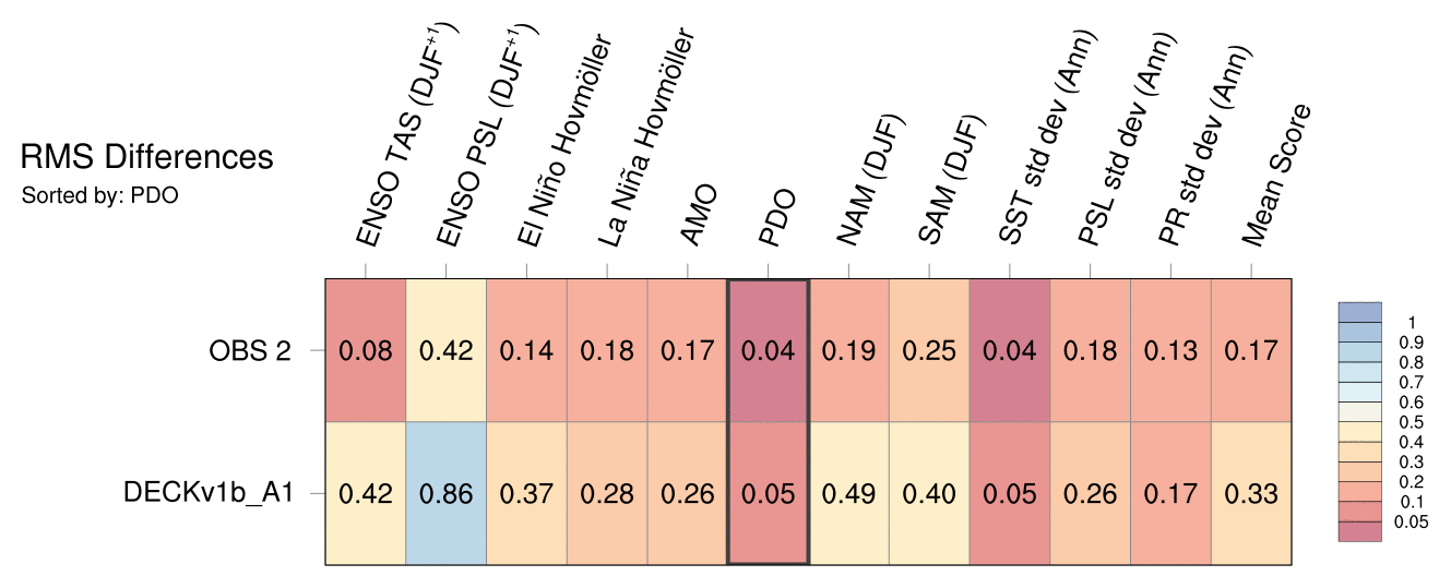 | Sort By: | Namelist (default) | Namelist (Alphabetically) | ENSO TAS | ENSO PSL | El Niño Hovmöller La Niña Hovmöller | AMO | PDO | NAM | SAM | SST std dev | PSL std dev | PR std dev | Mean Score |