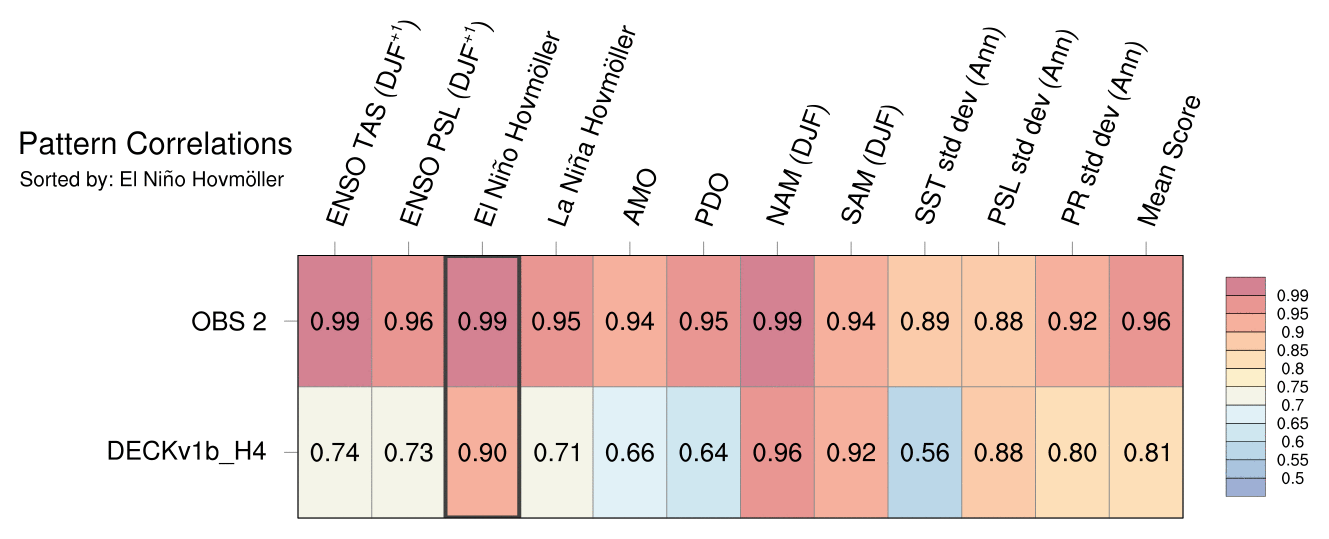 | Sort By: | Namelist (default) | Namelist (Alphabetically) | ENSO TAS | ENSO PSL | El Niño Hovmöller | La Niña Hovmöller | AMO | PDO | NAM | SAM | SST std dev | PSL std dev | PR std dev | Mean Score |