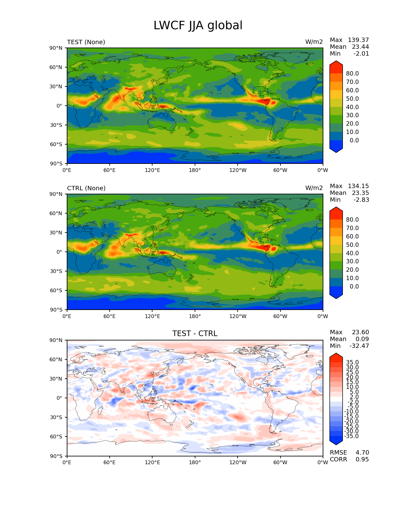 Use this command to recreate this image: | e3sm_diags lat_lon --no_viewer --sets 'lat_lon' --case_id 'MAM4_test_ctrl' --variables 'LWCF' --seasons 'JJA' --contour_levels '0' '10' '20' '30' '40' '50' '60' '70' '80' --diff_levels '-35' '-30' '-25' '-20' '-15' '-10' '-5' '-2' '2' '5' '10' '15' '20' '25' '30' '35' --run_type 'model_vs_model' --regions 'global' --regrid_tool 'esmf' --regrid_method 'conservative' --main_title 'LWCF JJA global' --backend 'mpl' --output_format 'png' --canvas_size_w '1212' --canvas_size_h '1628' --figsize '8.5' '11.0' --dpi '150' --arrows --test_name 'E3SM_MAM4_test2' --short_test_name 'TEST' --test_colormap 'cet_rainbow.rgb' --ref_name 'E3SM_MAM4_control' --reference_colormap 'cet_rainbow.rgb' --diff_title 'TEST - CTRL' --diff_colormap 'diverging_bwr.rgb' --multiprocessing --num_workers '32' --granulate 'variables' 'seasons' 'plevs' 'regions' --selectors 'sets' 'seasons' --reference_data_path '/global/cscratch1/sd/gxlin/MMF_regrid_data/E3SM_MAM4_control/climo_outdir/' --results_dir '/global/project/projectdirs/e3sm/www/gxlin/' --test_data_path '/global/cscratch1/sd/gxlin/MMF_regrid_data/E3SM_MAM4_test/climo_outdir/' |