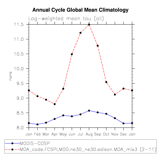 | TAUTLOGMODIS | Log-weighted mean optical thickness (all clouds) | plot |