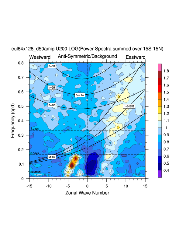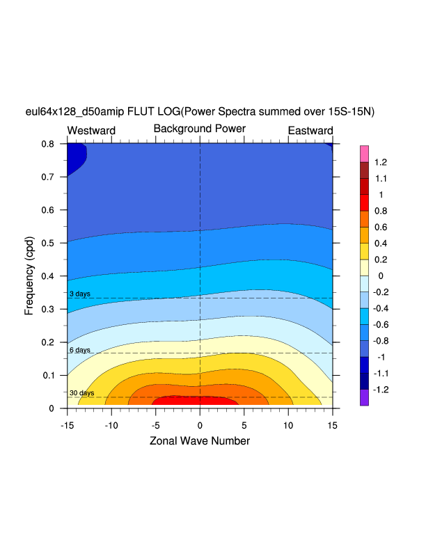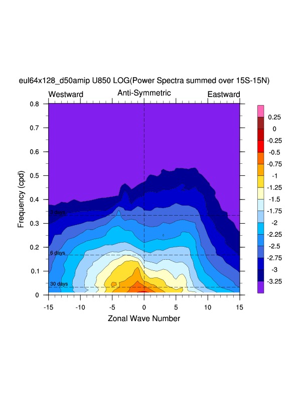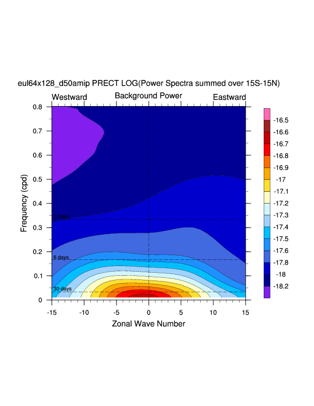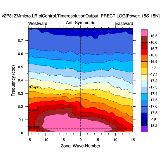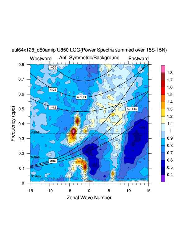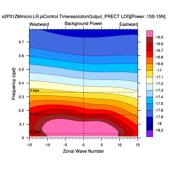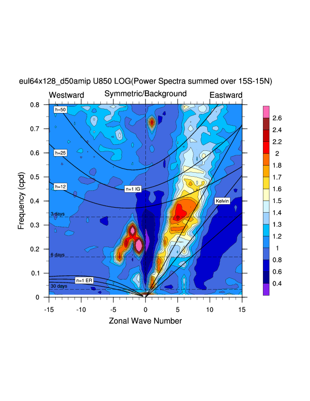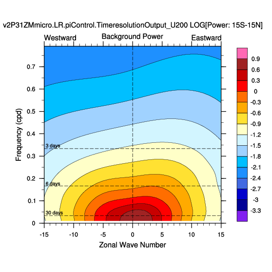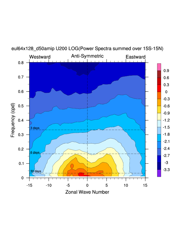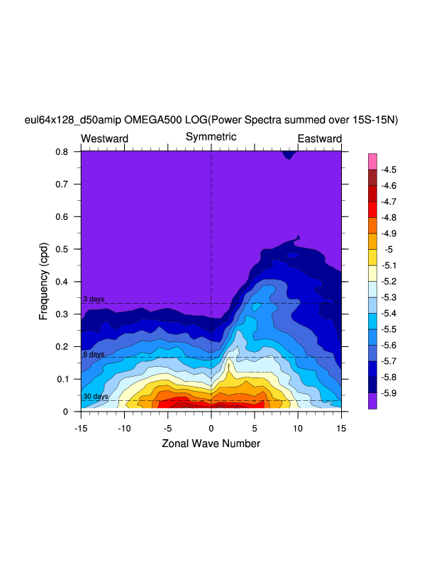 Zonal wavenumber-frequency logarithm of power spectra calculated from 06Z and