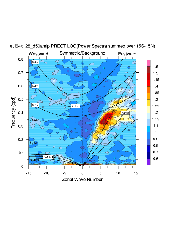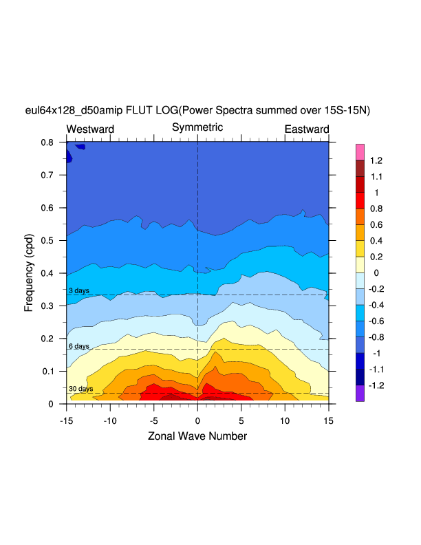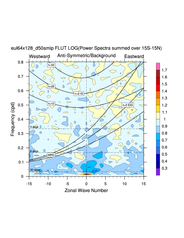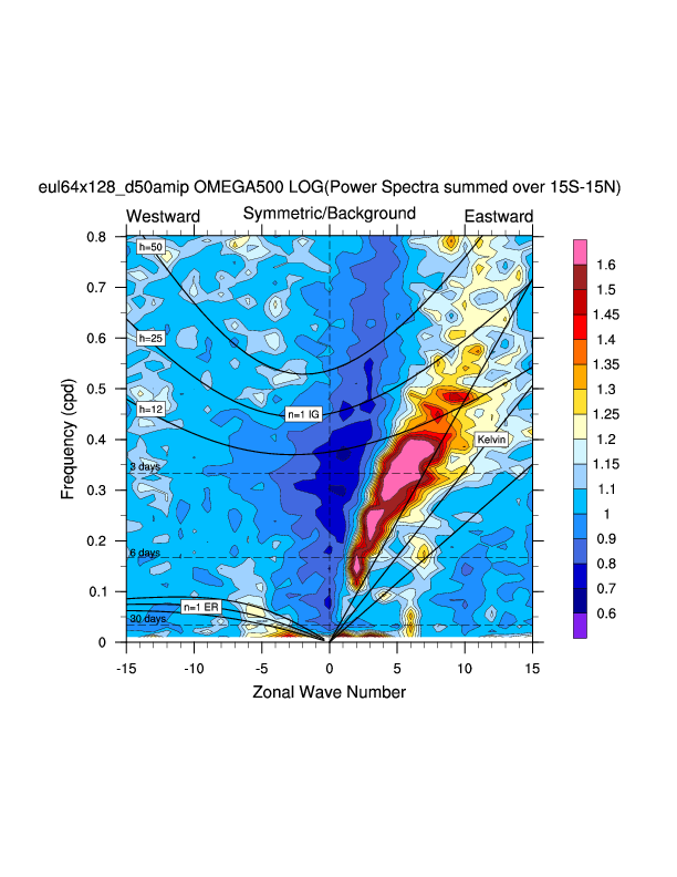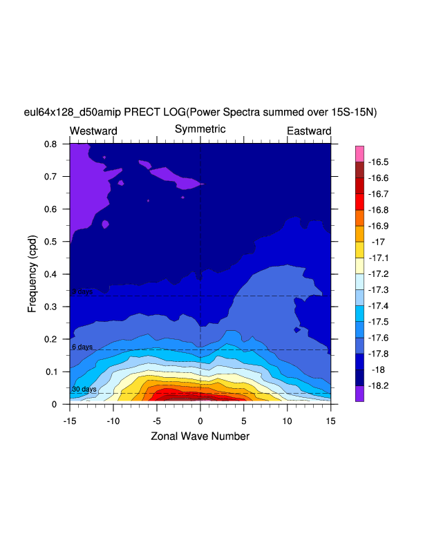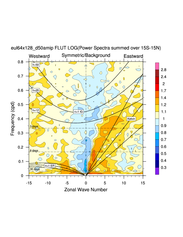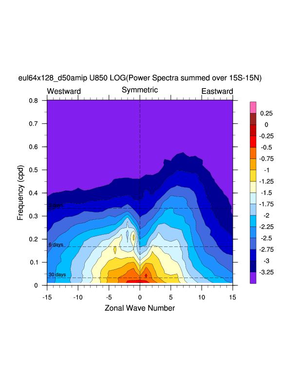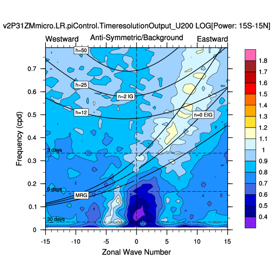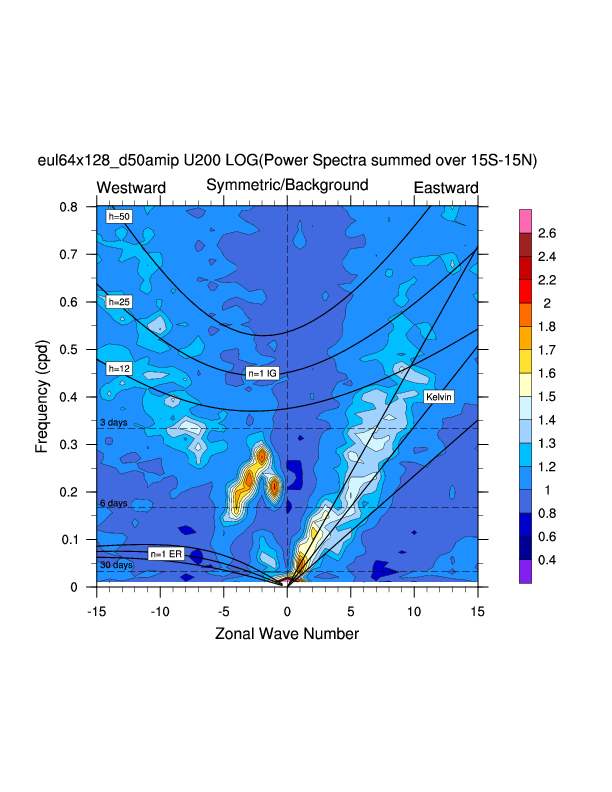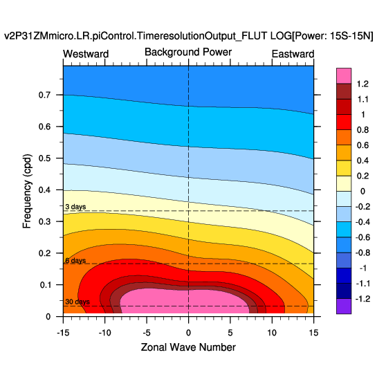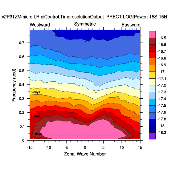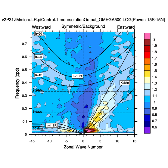 Zonal wavenumber-frequency logarithm of power spectra calculated from 06Z and