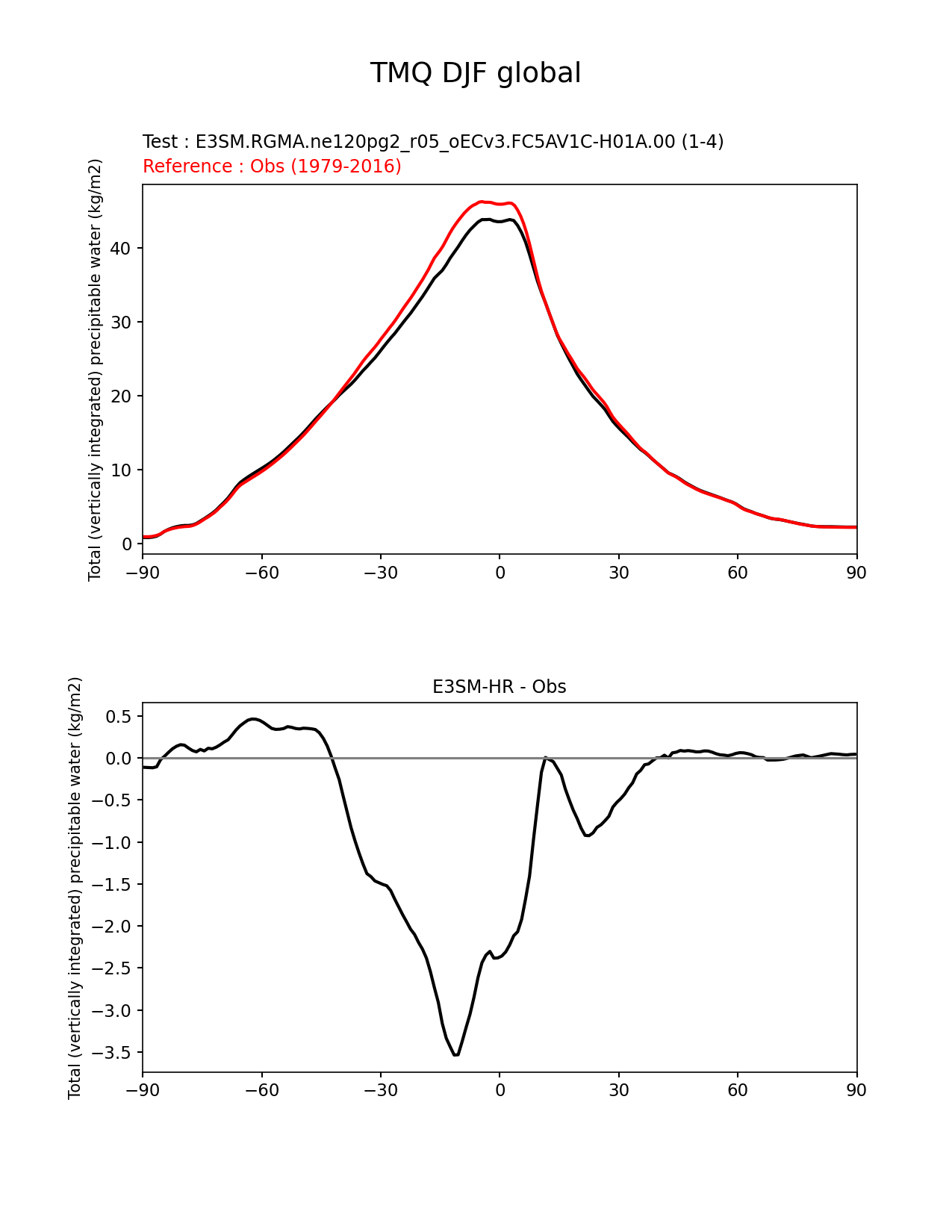Use this command to recreate this image: | e3sm_diags zonal_mean_xy --no_viewer --case_id 'ERA-Interim' --sets 'zonal_mean_xy' --run_type 'model_vs_obs' --variables 'TMQ' --seasons 'DJF' --regions 'global' --regrid_tool 'esmf' --regrid_method 'conservative' --main_title 'TMQ DJF global' --backend 'mpl' --output_format 'png' --canvas_size_w '1212' --canvas_size_h '1628' --figsize '8.5' '11.0' --dpi '150' --arrows --test_name 'E3SM.RGMA.ne120pg2_r05_oECv3.FC5AV1C-H01A.00' --test_colormap 'cet_rainbow.rgb' --ref_name 'ERA-Interim' --reference_name 'Obs' --reference_colormap 'cet_rainbow.rgb' --diff_title 'E3SM-HR - Obs' --diff_colormap 'diverging_bwr.rgb' --multiprocessing --num_workers '30' --granulate 'variables' 'seasons' 'plevs' 'regions' --selectors 'sets' 'seasons' --results_dir '/global/cscratch1/sd/whannah/diags_tmp/RGMA/E3SM-HR_vs_Obs' --reference_data_path '/global/cfs/cdirs/e3sm/acme_diags/obs_for_e3sm_diags/climatology/' --test_data_path '/global/cscratch1/sd/whannah/e3sm_scratch/cori-knl/E3SM.RGMA.ne120pg2_r05_oECv3.FC5AV1C-H01A.00/clim/' |
