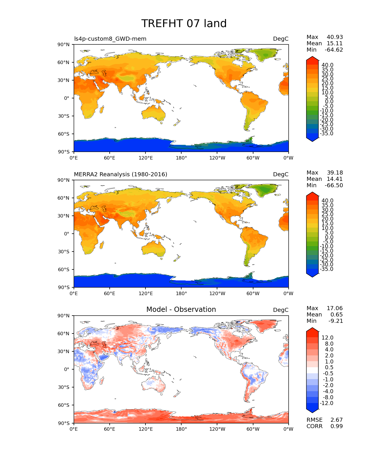 Use this command to recreate this image: | e3sm_diags lat_lon --no_viewer --reference_data_path '/global/cfs/cdirs/e3sm/diagnostics/observations/Atm/climatology' --test_data_path '/pscratch/sd/x/xie7/ls4p/zppy/output/ls4p-custom8_GWD-mem/ls4p-custom8_GWD-mem_ens' --results_dir '/global/cfs/cdirs/e3sm/www/xie7/diags_ls4p/ls4p_GWD_ens' --case_id 'MERRA2' --run_type 'model_vs_obs' --sets 'lat_lon' --variables 'TREFHT' --seasons 07 --regions 'land' --regrid_tool 'esmf' --regrid_method 'bilinear' --num_workers '4' --main_title 'TREFHT 07 land' --backend 'mpl' --output_format 'png' --canvas_size_w '1212' --canvas_size_h '1628' --figsize '8.5' '11.0' --dpi '150' --arrows --contour_levels '-35' '-30' '-25' '-20' '-15' '-10' '-5' '0' '5' '10' '15' '20' '25' '30' '35' '40' --test_name 'ls4p-custom8_GWD-mem' --test_colormap 'cet_rainbow.rgb' --ref_name 'MERRA2' --reference_name 'MERRA2 Reanalysis' --reference_colormap 'cet_rainbow.rgb' --diff_title 'Model - Observation' --diff_colormap 'diverging_bwr.rgb' --diff_levels '-12' '-8' '-4' '-2' '-1' '-0.5' '0.5' '1' '2' '4' '8' '12' --granulate 'variables' 'seasons' 'plevs' 'regions' --selectors 'sets' 'seasons' |