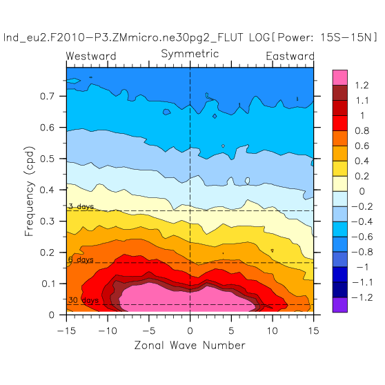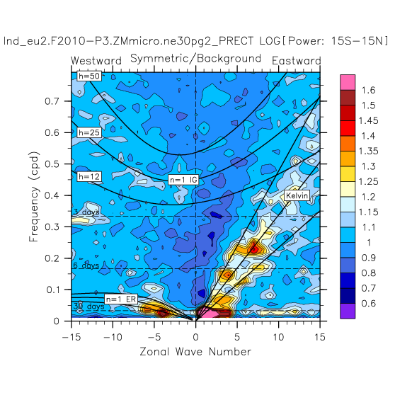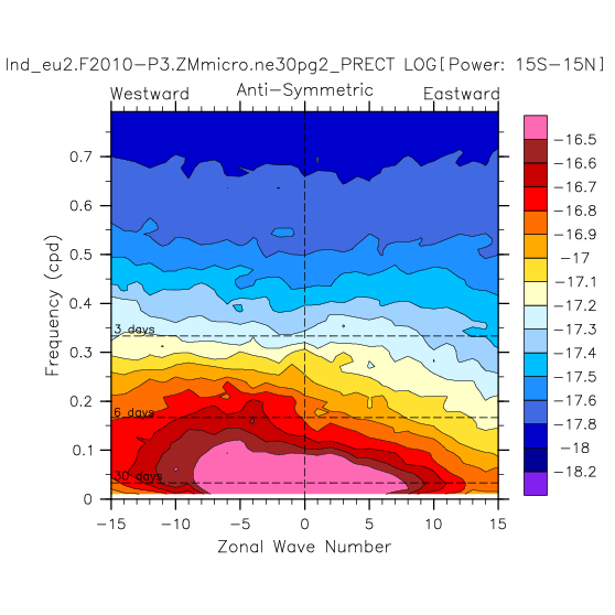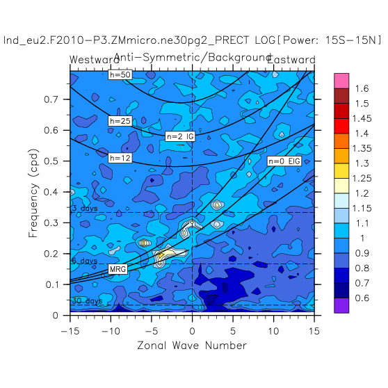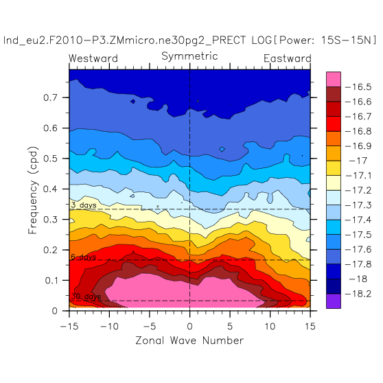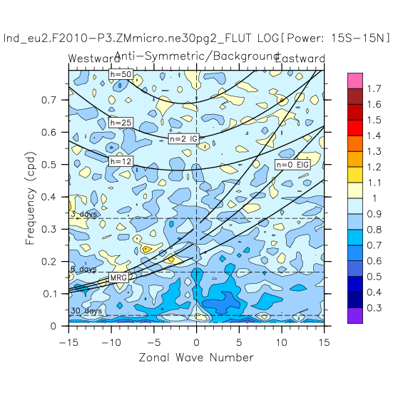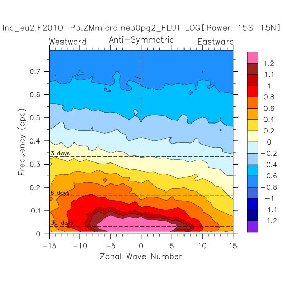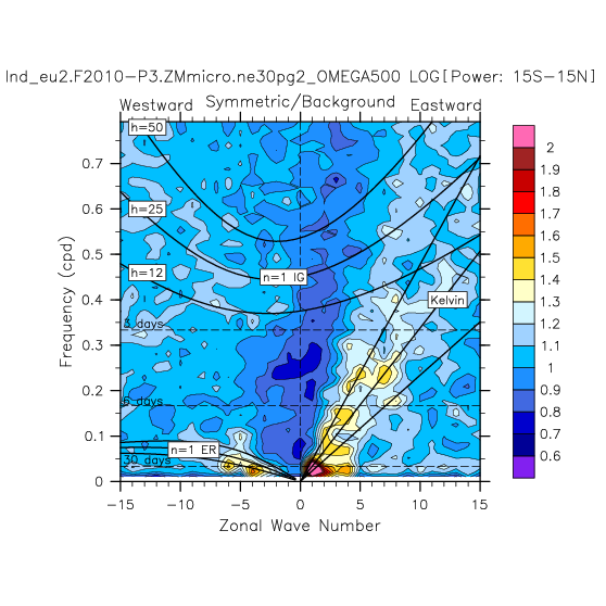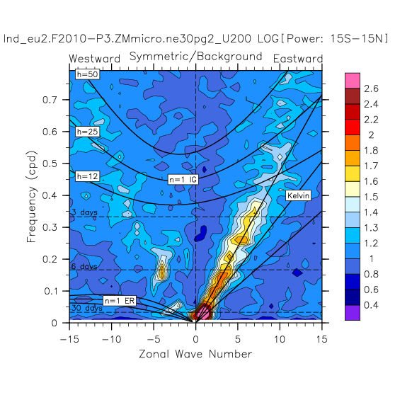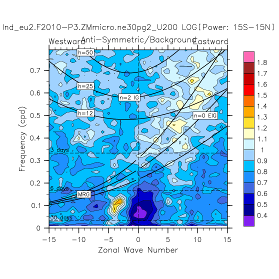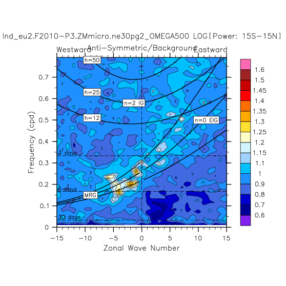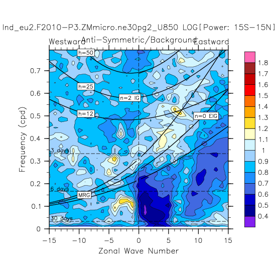 Zonal wavenumber-frequency logarithm of power spectra calculated from 06Z and