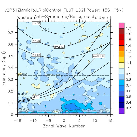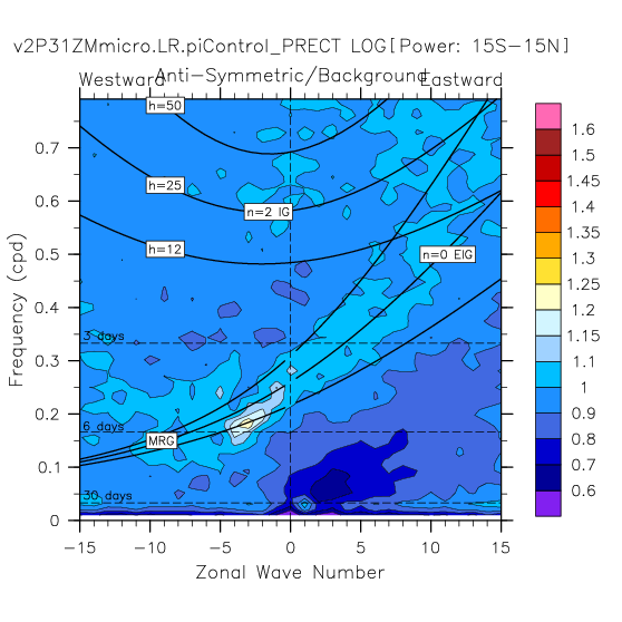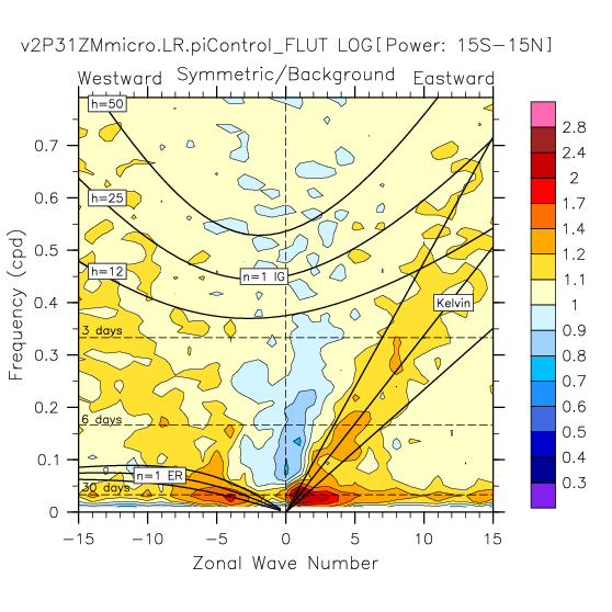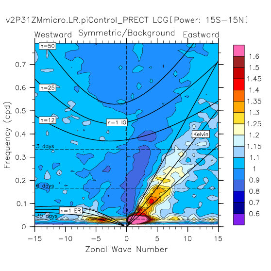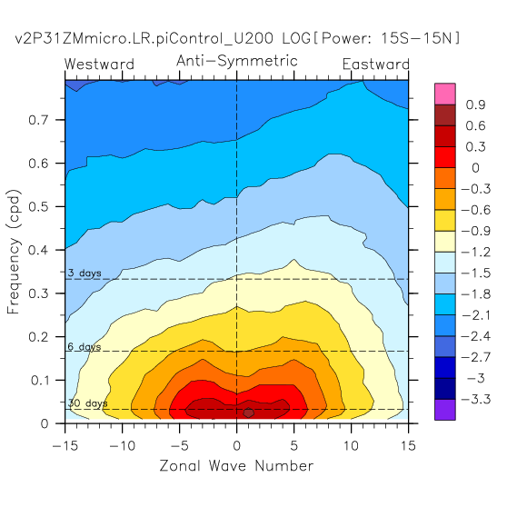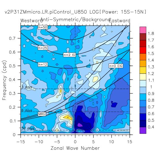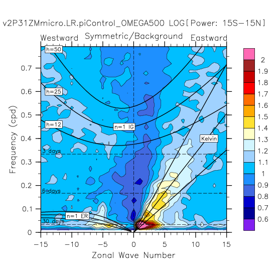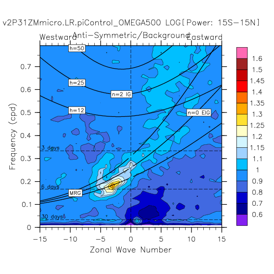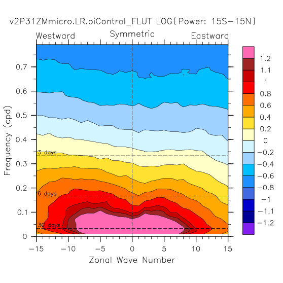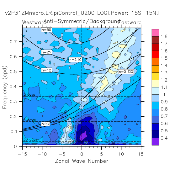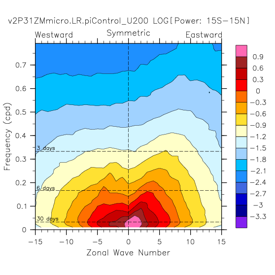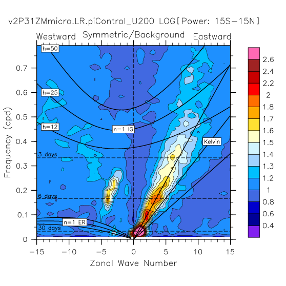 Zonal wavenumber-frequency logarithm of power spectra calculated from 06Z and