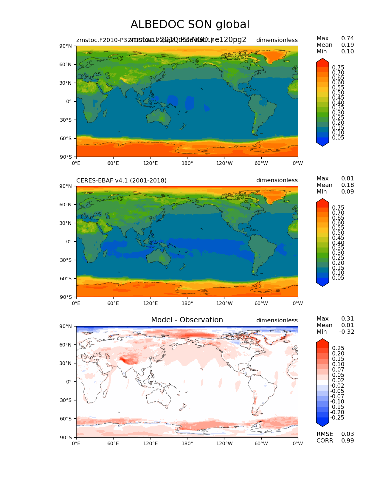 Use this command to recreate this image: | e3sm_diags lat_lon --no_viewer --case_id 'CERES-EBAF-TOA-v4.1' --sets 'lat_lon' --run_type 'model_vs_obs' --variables 'ALBEDOC' --seasons 'SON' --regions 'global' --regrid_tool 'esmf' --regrid_method 'conservative' --main_title 'ALBEDOC SON global' --backend 'mpl' --output_format 'png' --canvas_size_w '1212' --canvas_size_h '1628' --figsize '8.5' '11.0' --dpi '150' --arrows --contour_levels '0.05' '0.1' '0.15' '0.2' '0.25' '0.3' '0.35' '0.4' '0.45' '0.5' '0.55' '0.6' '0.65' '0.7' '0.75' --test_name 'zmstoc.F2010-P3.NGD.ne120pg2' --test_title 'zmstoc.F2010-P3.NGD.ne120pg2' --test_colormap 'cet_rainbow.rgb' --ref_name 'ceres_ebaf_toa_v4.1' --reference_name 'CERES-EBAF v4.1' --reference_colormap 'cet_rainbow.rgb' --diff_title 'Model - Observation' --diff_colormap 'diverging_bwr.rgb' --diff_levels '-0.25' '-0.2' '-0.15' '-0.1' '-0.07' '-0.05' '-0.02' '0.02' '0.05' '0.07' '0.1' '0.15' '0.2' '0.25' --num_workers '4' --granulate 'variables' 'seasons' 'plevs' 'regions' --selectors 'sets' 'seasons' --reference_data_path '/global/cfs/cdirs/e3sm/acme_diags/obs_for_e3sm_diags/climatology/' --test_data_path '/global/cscratch1/sd/xsongsio/E3SM_simulations/zmstoc.F2010-P3.NGD.ne120pg2/diag/clim_rgr/6yr/' --results_dir '/global/cfs/cdirs/e3sm/www/xsongsio/zmstoc.F2010-P3.NGD.ne120pg2/6yr' |