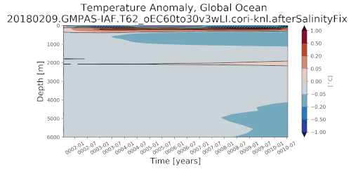 An analysis task for plotting a Hovmoller plot (time and depth axes) of the anomaly in ocean potential temperature from a reference year (usully the first year of the simulation).