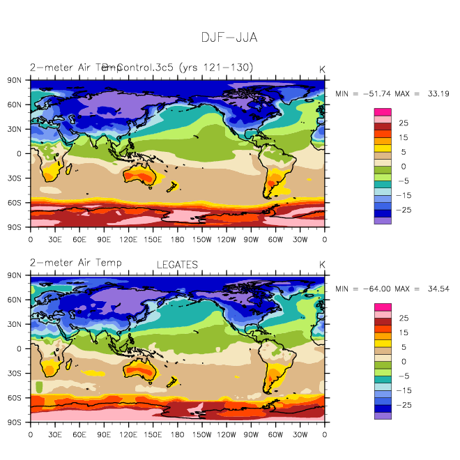 B-Control.3c5 DIAG Set 9 - Horizontal contour plots of DJF-JJA differences