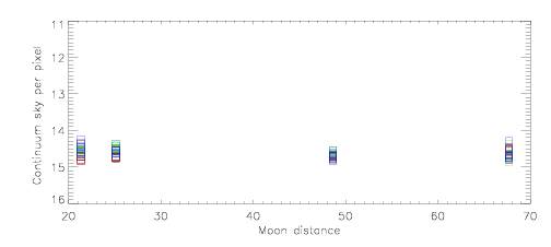 Zeropoints | Sky level | Sky level vs moon distance |
