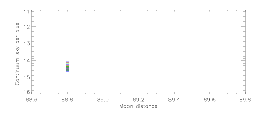 Zeropoints | Sky level | Sky level vs moon distance |