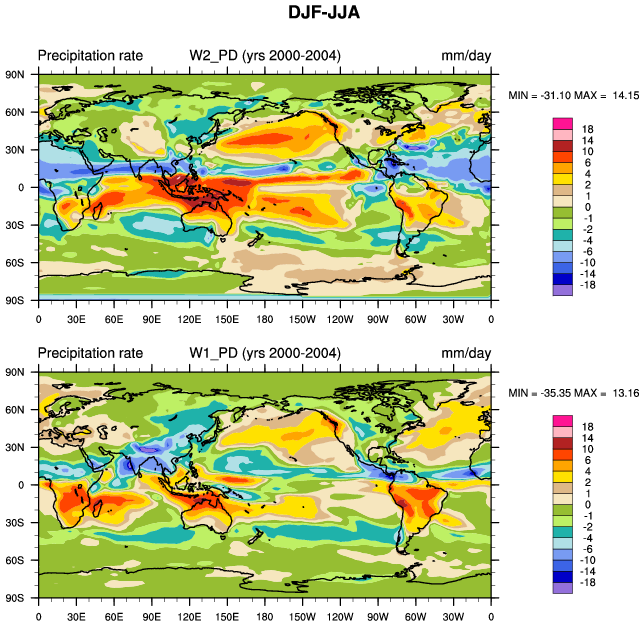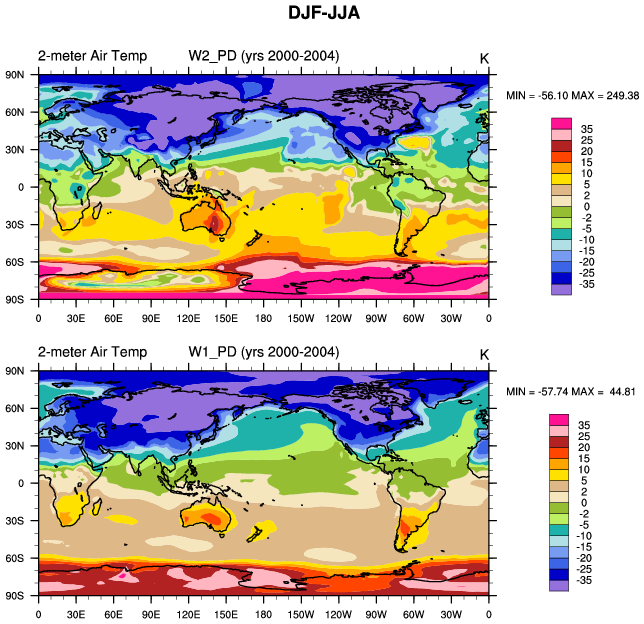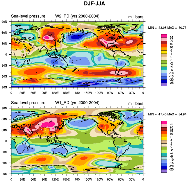 DIAG Set 9 - Horizontal contour plots of DJF-JJA differences