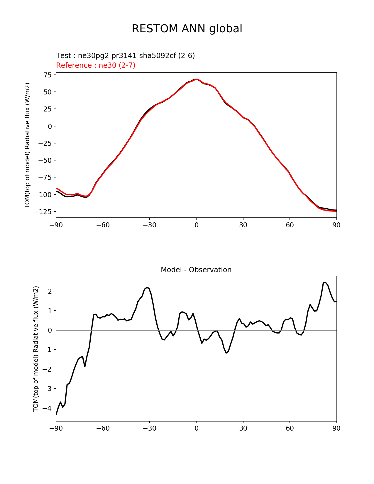 Use this command to recreate this image: | e3sm_diags --no_viewer --results_dir '/global/project/projectdirs/acme/www/ambrad/pg-ne30pg2-pr3141-sha5092cf' --variables 'RESTOM' --diff_colormap 'diverging_bwr.rgb' --test_colormap 'cet_rainbow.rgb' --backend 'mpl' --canvas_size_h '1628' --reference_colormap 'cet_rainbow.rgb' --reference_data_path '/global/cscratch1/sd/ambradl/acme_scratch/cori-knl/diags1/ne30' --main_title 'RESTOM ANN global' --test_data_path '/global/cscratch1/sd/ambradl/acme_scratch/cori-knl/diags1/ne30pg2-pr3141-sha5092cf' --regions 'global' --regrid_method 'conservative' --figsize '8.5' '11.0' --canvas_size_w '1212' --run_type 'model_vs_model' --regrid_tool 'esmf' --num_workers '4' --reference_name 'ne30' --output_format 'png' --case_id 'model_vs_model' --granulate 'variables' 'seasons' 'regions' 'plevs' --test_name 'ne30pg2-pr3141-sha5092cf' --seasons 'ANN' --arrows --selectors 'sets' 'seasons' --diff_title 'Model - Observation' --sets 'zonal_mean_xy' --dpi '150' |