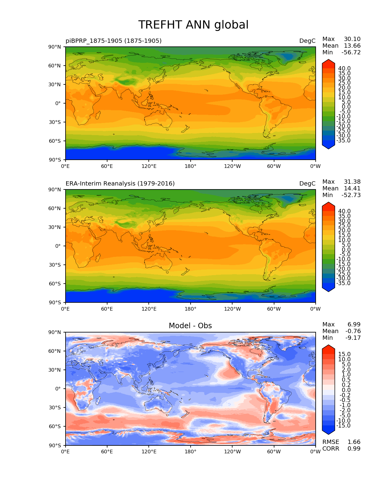 Use this command to recreate this image: | e3sm_diags --no_viewer --variables 'TREFHT' --diff_colormap 'diverging_bwr.rgb' --contour_levels '-35' '-30' '-25' '-20' '-15' '-10' '-5' '0' '5' '10' '15' '20' '25' '30' '35' '40' --test_data_path '/scratch2/scratchdirs/beharrop/E3SM_simulations/20190201.piBPRP_CNPCTC1850_OIBGC.ne30_oECv3.edison/reg_climo/20190201.piBPRP_CNPCTC1850_OIBGC.ne30_oECv3.edison/yrs1875_1905/' --diff_levels '-15' '-10' '-5' '-2' '-1' '-0.5' '-0.2' '0' '0.2' '0.5' '1' '2' '5' '10' '15' --backend 'mpl' --canvas_size_h '1628' --reference_colormap 'cet_rainbow.rgb' --reference_data_path '/global/project/projectdirs/acme/acme_diags/obs_for_e3sm_diags/climatology/' --main_title 'TREFHT ANN global' --results_dir '/scratch2/scratchdirs/beharrop/E3SM_simulations/20190201.piBPRP_CNPCTC1850_OIBGC.ne30_oECv3.edison/e3sm_diags/' --regions 'global' --test_colormap 'cet_rainbow.rgb' --regrid_method 'conservative' --short_test_name 'piBPRP_1875-1905' --figsize '8.5' '11.0' --ref_name 'ERA-Interim' --run_type 'model_vs_obs' --regrid_tool 'esmf' --num_workers '24' --reference_name 'ERA-Interim Reanalysis' --output_format 'png' --case_id 'ERA-Interim' --granulate 'variables' 'seasons' 'regions' 'plevs' --test_name '20190201.piBPRP_CNPCTC1850_OIBGC.ne30_oECv3.edison' --seasons 'ANN' --arrows --selectors 'sets' 'seasons' --diff_title 'Model - Obs' --sets 'lat_lon' --canvas_size_w '1212' --multiprocessing --dpi '150' |