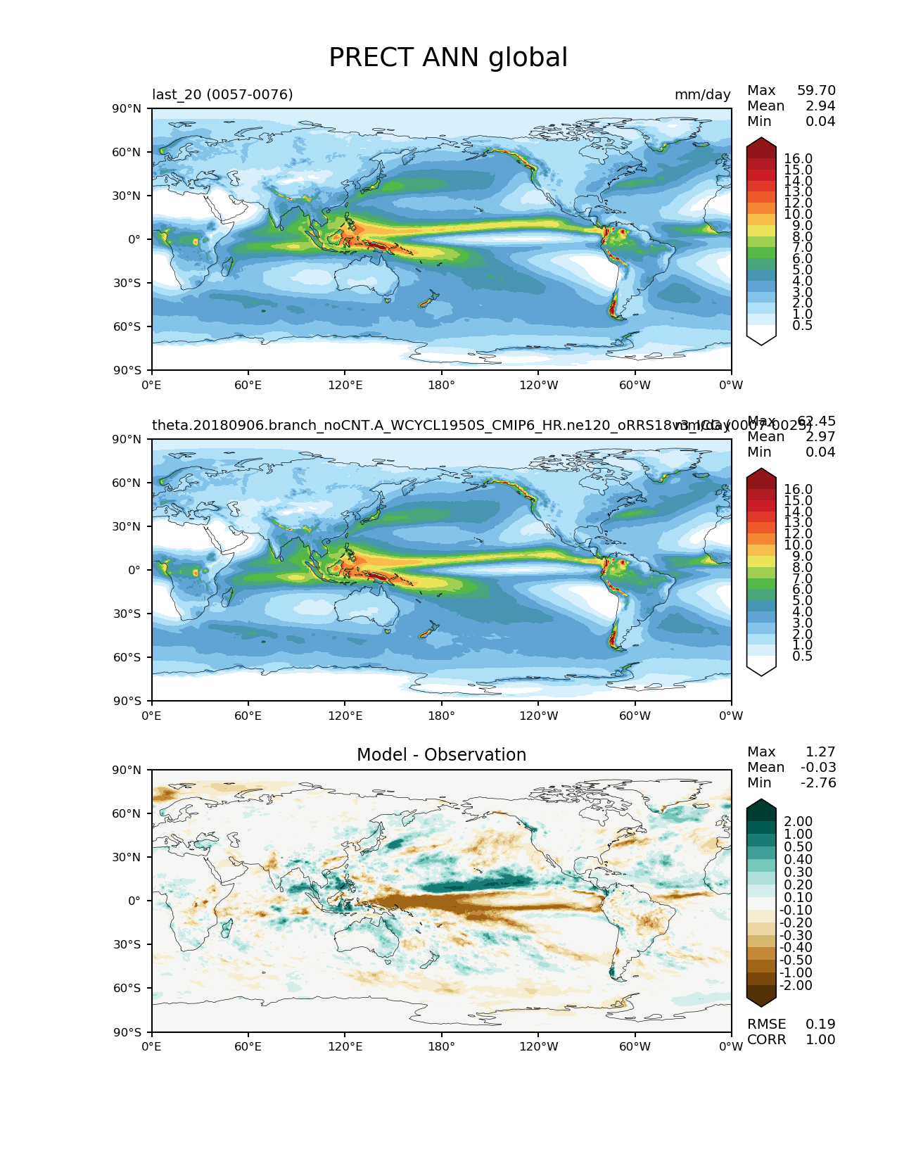 | Use this command to recreate this image: | e3sm_diags lat_lon --no_viewer --case_id 'model_vs_model' --sets 'lat_lon' --run_type 'model_vs_model' --variables 'PRECT' --seasons 'ANN' --regions 'global' --regrid_tool 'esmf' --regrid_method 'conservative' --main_title 'PRECT ANN global' --backend 'mpl' --output_format 'png' --canvas_size_w '1212' --canvas_size_h '1628' --figsize '8.5' '11.0' --dpi '150' --arrows --contour_levels '0.5' '1' '2' '3' '4' '5' '6' '7' '8' '9' '10' '12' '13' '14' '15' '16' --test_name 'theta.20190910.branch_noCNT.n438b.unc03.A_WCYCL1950S_CMIP6_HR.ne120_oRRS18v3_ICG' --short_test_name 'last_20' --test_colormap 'WhiteBlueGreenYellowRed.rgb' --reference_name 'theta.20180906.branch_noCNT.A_WCYCL1950S_CMIP6_HR.ne120_oRRS18v3_ICG' --reference_colormap 'WhiteBlueGreenYellowRed.rgb' --diff_title 'Model - Observation' --diff_colormap 'BrBG' --diff_levels '-2' '-1' '-0.5' '-0.4' '-0.3' '-0.2' '-0.1' '0.1' '0.2' '0.3' '0.4' '0.5' '1' '2' --multiprocessing --num_workers '32' --granulate 'variables' 'seasons' 'plevs' 'regions' --selectors 'sets' 'seasons' --reference_data_path '/global/cscratch1/sd/beharrop/E3SM_simulations/v1DECK/HR_firstish20/reg_climo/yrs0007_0025/' --test_data_path '/global/cscratch1/sd/beharrop/E3SM_simulations/v1DECK/HR_last20/reg_climo/theta.20190910.branch_noCNT.n438b.unc03.A_WCYCL1950S_CMIP6_HR.ne120_oRRS18v3_ICG/yrs0057_0076/' --results_dir '/global/cscratch1/sd/beharrop/E3SM_simulations/v1DECK/HR_last20/mod_v_mod_comp_diags' |