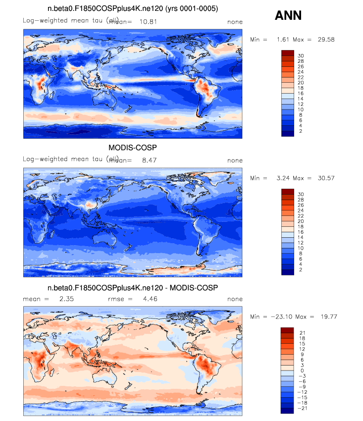 | TAUIMODIS | Mean optical thickness (ice clouds) | plot | plot | plot |