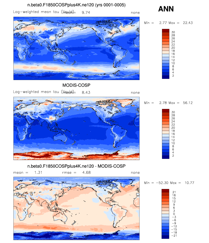 | TAUWMODIS | Mean optical thickness (liquid clouds) | plot | plot | plot |