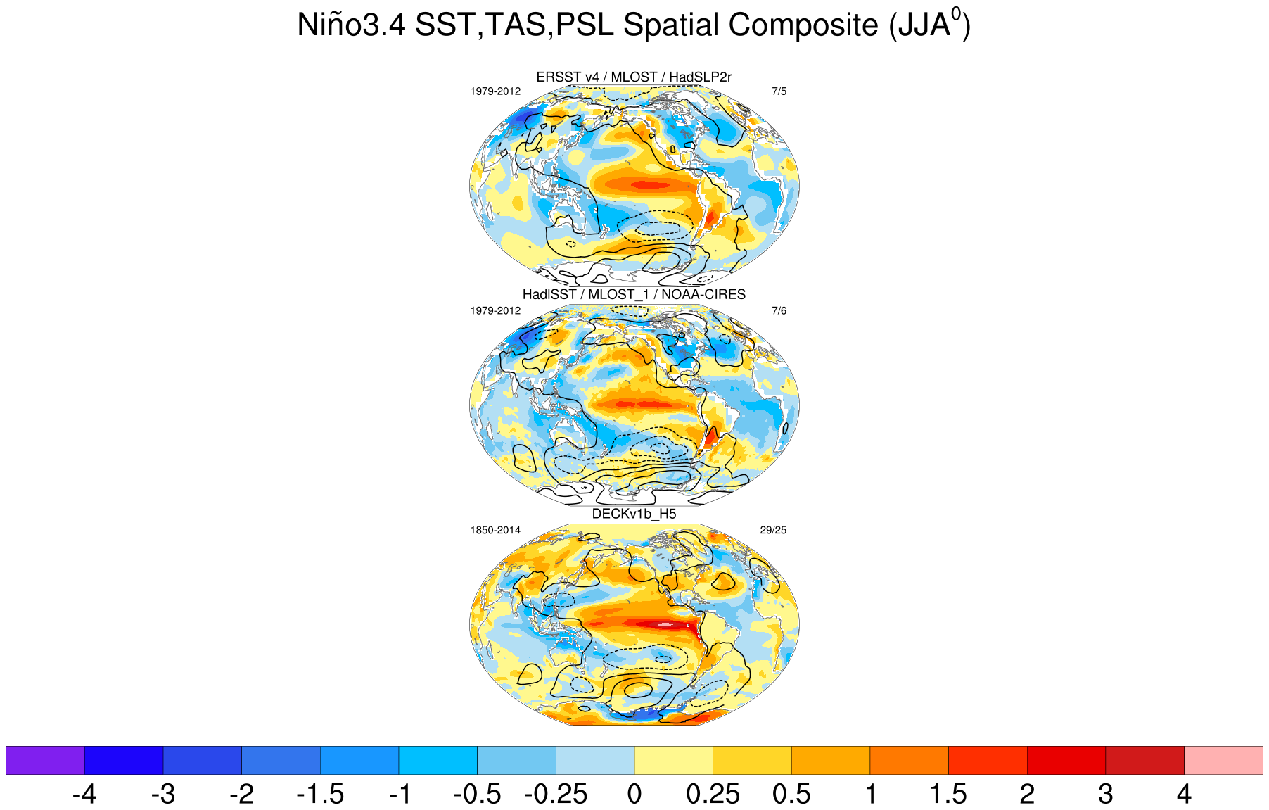 ENSO | Spatial Composites | SST/TAS/PSL JJA0 SON0 DJF+1 MAM+1 |