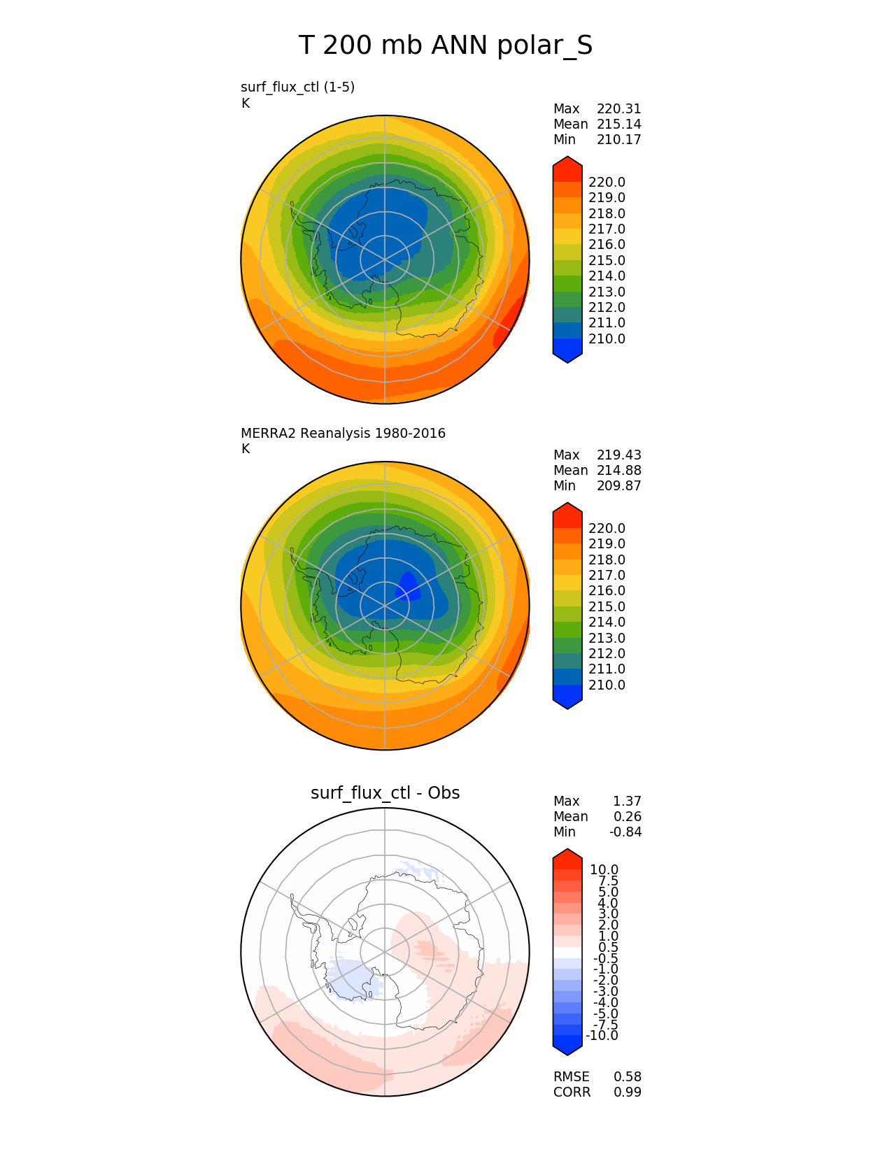 Command to run | e3sm_diags --no_viewer --contour_levels '210' '211' '212' '213' '214' '215' '216' '217' '218' '219' '220' --results_dir '/global/project/projectdirs/acme/www/jeyre/v1ctl_obs' --diff_levels '-10' '-7.5' '-5' '-4' '-3' '-2' '-1' '-0.5' '0.5' '1' '2' '3' '4' '5' '7.5' '10' --test_colormap 'cet_rainbow.rgb' --backend 'mpl' --canvas_size_h '1628' --reference_colormap 'cet_rainbow.rgb' --reference_data_path '/global/project/projectdirs/acme/acme_diags/obs_for_acme_diags/' --main_title 'T 200 mb ANN polar_S' --test_data_path '/global/cscratch1/sd/jeyre/acme_scratch/surf_flux_ctl_archive/climo/f09/' --regions 'polar_S' --case_id 'MERRA2' --regrid_method 'conservative' --variables 'T' --figsize '8.5' '11.0' --ref_name 'MERRA2' --run_type 'model_vs_obs' --regrid_tool 'esmf' --num_workers '24' --reference_name 'MERRA2 Reanalysis 1980-2016' --output_format 'png' --diff_colormap 'diverging_bwr.rgb' --granulate 'variables' 'seasons' 'regions' 'plevs' --test_name 'surf_flux_ctl' --seasons 'ANN' --arrows --selectors 'sets' 'seasons' --diff_title 'surf_flux_ctl - Obs' --sets 'polar' --plevs '200.0' --canvas_size_w '1212' --multiprocessing --dpi '150' |
