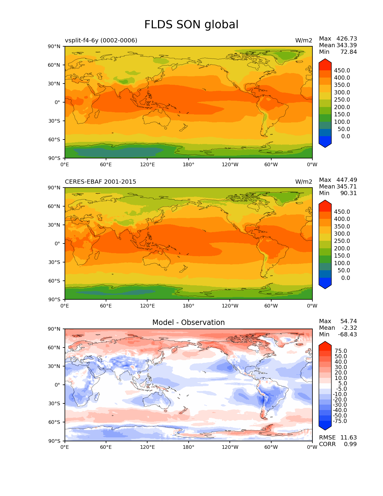 Command to run | e3sm_diags --no_viewer --variables 'FLDS' --contour_levels '0' '50' '100' '150' '200' '250' '300' '350' '400' '450' --test_data_path '/scratch1/scratchdirs/onguba/vsplit-diag/may09-f4/' --diff_levels '-75' '-50' '-40' '-30' '-20' '-10' '-5' '5' '10' '20' '30' '40' '50' '75' --test_colormap 'cet_rainbow.rgb' --backend 'mpl' --canvas_size_h '1628' --reference_colormap 'cet_rainbow.rgb' --reference_data_path '/global/project/projectdirs/acme/acme_diags/obs_for_acme_diags/' --main_title 'FLDS SON global' --results_dir 'lat-lon-results' --regions 'global' --case_id 'CERES-EBAF-surface-v4.0' --regrid_method 'conservative' --figsize '8.5' '11.0' --canvas_size_w '1212' --run_type 'model_vs_obs' --regrid_tool 'esmf' --num_workers '4' --reference_name 'CERES-EBAF 2001-2015' --output_format 'png' --diff_colormap 'diverging_bwr.rgb' --granulate 'variables' 'seasons' 'regions' 'plevs' --test_name 'vsplit-f4-6y' --seasons 'SON' --arrows --diff_title 'Model - Observation' --sets 'lat_lon' --ref_name 'ceres_ebaf_surface_v4.0' --dpi '150' |