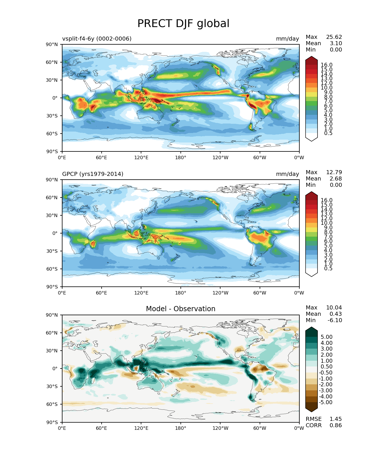 Command to run | e3sm_diags --no_viewer --variables 'PRECT' --contour_levels '0.5' '1' '2' '3' '4' '5' '6' '7' '8' '9' '10' '12' '13' '14' '15' '16' --test_data_path '/scratch1/scratchdirs/onguba/vsplit-diag/may09-f4/' --diff_levels '-5' '-4' '-3' '-2' '-1' '-0.5' '0.5' '1' '2' '3' '4' '5' --backend 'mpl' --canvas_size_h '1628' --reference_colormap 'WhiteBlueGreenYellowRed.rgb' --reference_data_path '/global/project/projectdirs/acme/acme_diags/obs_for_acme_diags/' --main_title 'PRECT DJF global' --results_dir 'lat-lon-results' --regions 'global' --test_colormap 'WhiteBlueGreenYellowRed.rgb' --regrid_method 'conservative' --figsize '8.5' '11.0' --ref_name 'GPCP_v2.2' --run_type 'model_vs_obs' --regrid_tool 'esmf' --num_workers '4' --reference_name 'GPCP (yrs1979-2014)' --output_format 'png' --case_id 'GPCP_v2.2' --granulate 'variables' 'seasons' 'regions' 'plevs' --test_name 'vsplit-f4-6y' --seasons 'DJF' --arrows --diff_title 'Model - Observation' --sets 'lat_lon' --diff_colormap 'BrBG' --canvas_size_w '1212' --dpi '150' |