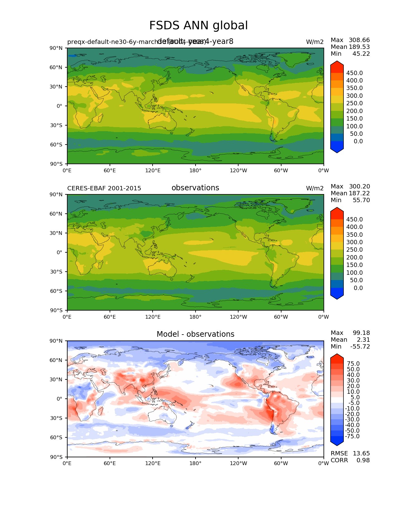 Command to run | e3sm_diags --no_viewer --variables 'FSDS' --contour_levels '0' '50' '100' '150' '200' '250' '300' '350' '400' '450' --test_data_path '/scratch1/scratchdirs/onguba/variability-diagn/climoout.190330and190331-0004-0008' --diff_levels '-75' '-50' '-40' '-30' '-20' '-10' '-5' '5' '10' '20' '30' '40' '50' '75' --test_colormap 'cet_rainbow.rgb' --backend 'mpl' --canvas_size_h '1628' --reference_colormap 'cet_rainbow.rgb' --reference_data_path '/global/project/projectdirs/acme/acme_diags/obs_for_acme_diags/' --main_title 'FSDS ANN global' --results_dir 'latlon-vs-obs.190330and190331' --regions 'global' --case_id 'CERES-EBAF-surface-v4.0' --regrid_method 'conservative' --figsize '8.5' '11.0' --canvas_size_w '1212' --run_type 'model_vs_obs' --regrid_tool 'esmf' --num_workers '4' --reference_name 'CERES-EBAF 2001-2015' --output_format 'png' 'pdf' --diff_colormap 'diverging_bwr.rgb' --granulate 'variables' 'seasons' 'regions' 'plevs' --test_name 'preqx-default-ne30-6y-march30' --seasons 'ANN' --reference_title 'observations' --test_title 'default, year4-year8' --arrows --diff_title 'Model - observations' --sets 'lat_lon' --ref_name 'ceres_ebaf_surface_v4.0' --dpi '150' |